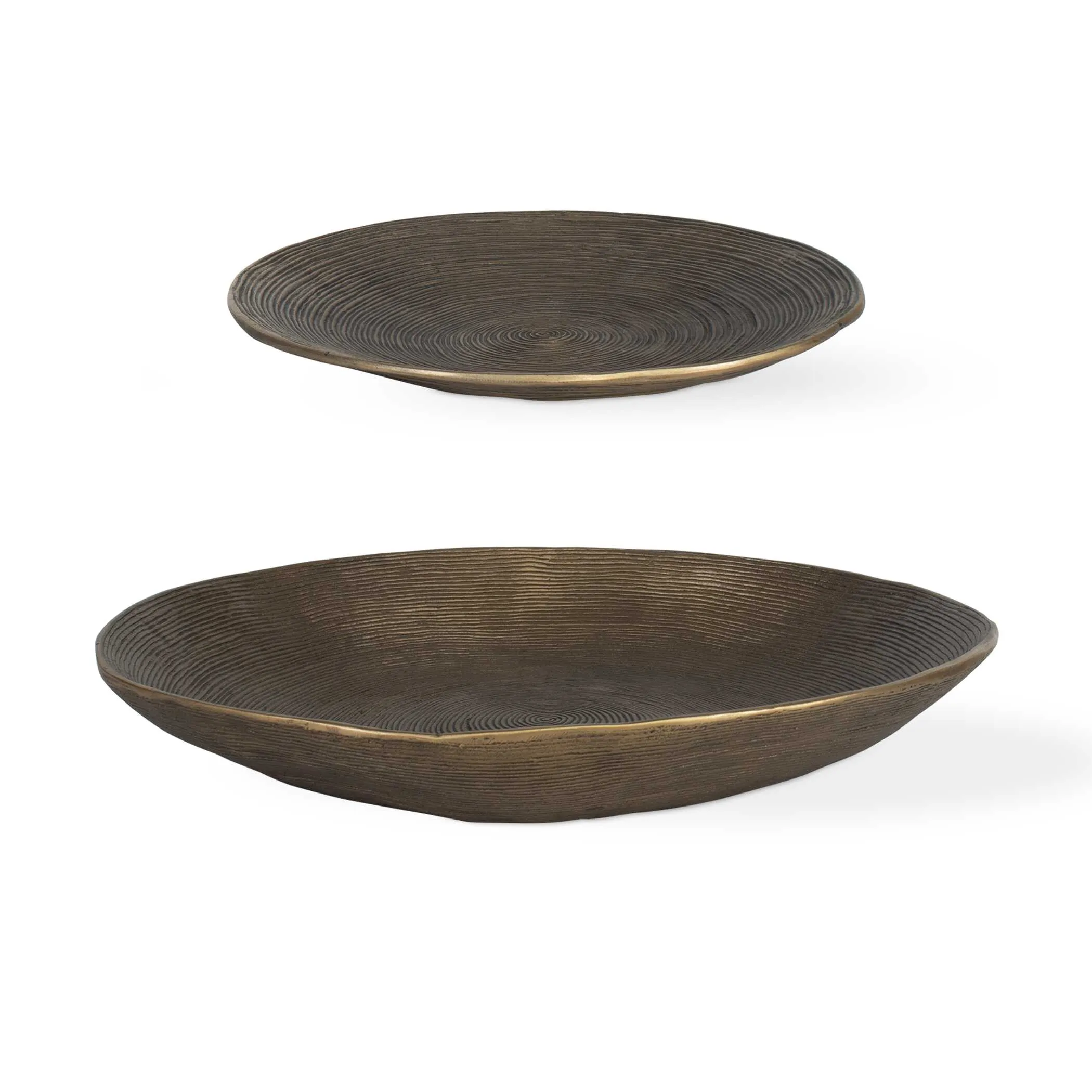 Make A Bold Statement To Your Decor With These Handcrafted Aluminum Bowls. Their Ribbed Design And Rich Antique Brass Finish, Adds A Touch Of Elegance And Sophistication To Any Space. Durable, Versatile, And Timeless! Sizes: S-13x2x13, L-18x3x18