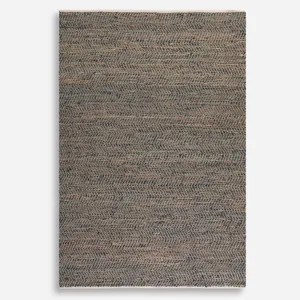 Rescued Italian Beige And Gray Leathers Hand Woven With Natural Hemp. This Rug Is Not Recommended For High Traffic Areas.