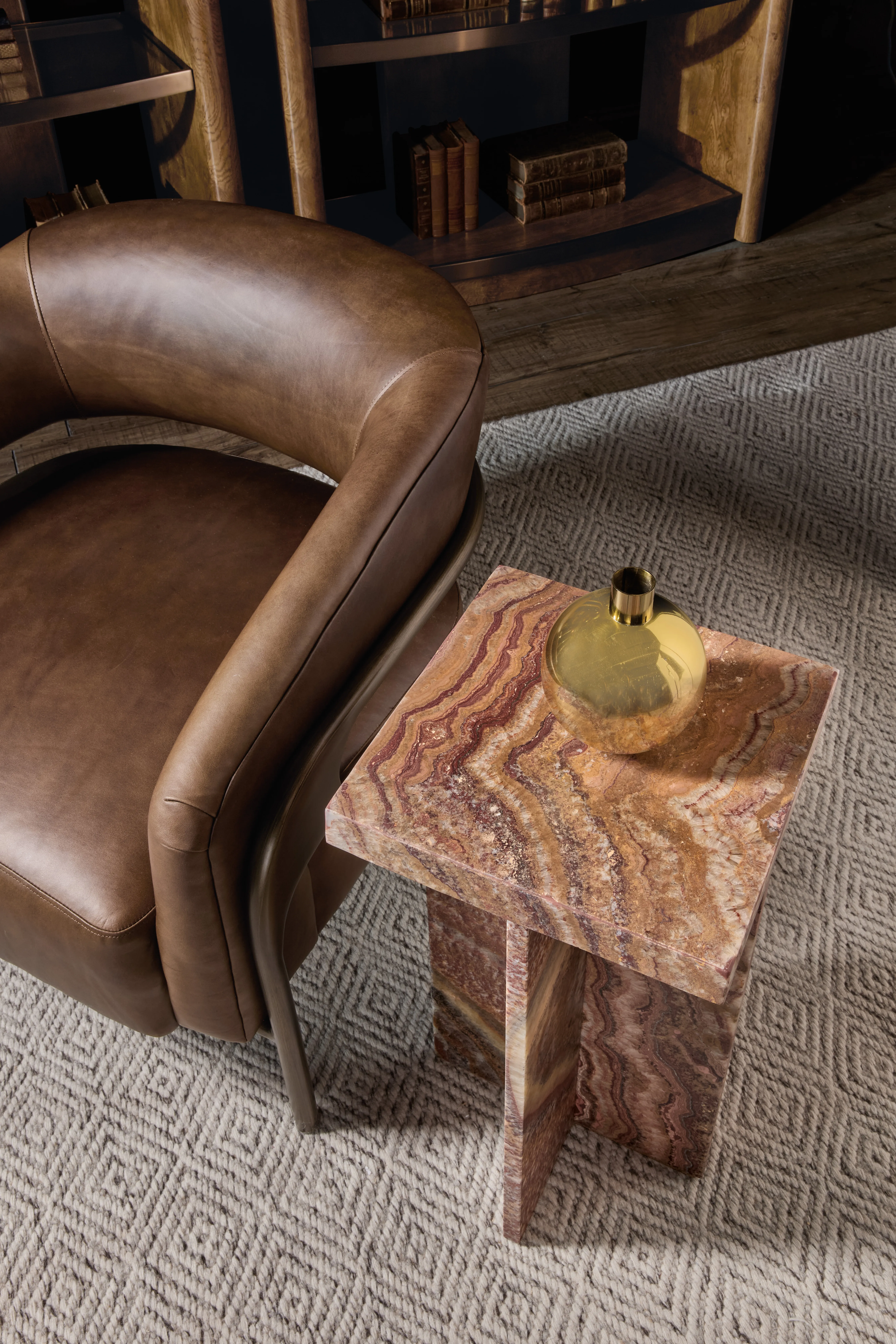 - Finish: Rich golden brown finish over oak veneers with bronze metal accents