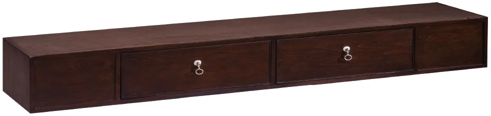 Two drawers, fits either side of bed, ONE per box Fits either King or Queen bed. Height: 9.25 Width: 81.5 Depth: 18