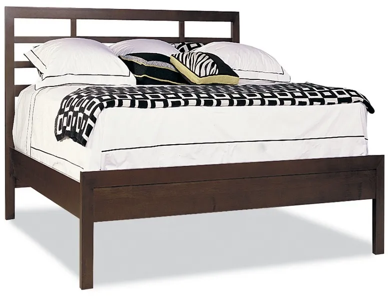 Width (inches) 81.75 Length (inches) 87.5 Height (inches) 52.0 Style Contemporary Collections Soma Collection Bed Size King Wood Species Solid Maple Finish Options Only Available in Soma Additional Information Footboard height: 19.25 inches, California King Rail converson kit available, Use with Mattress only, Approximate slat height: 12.25 inches, Available as headboard only