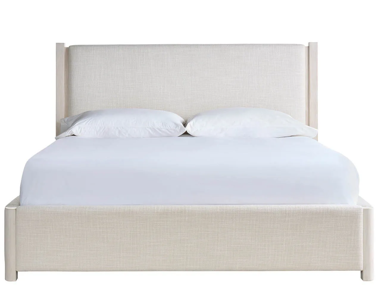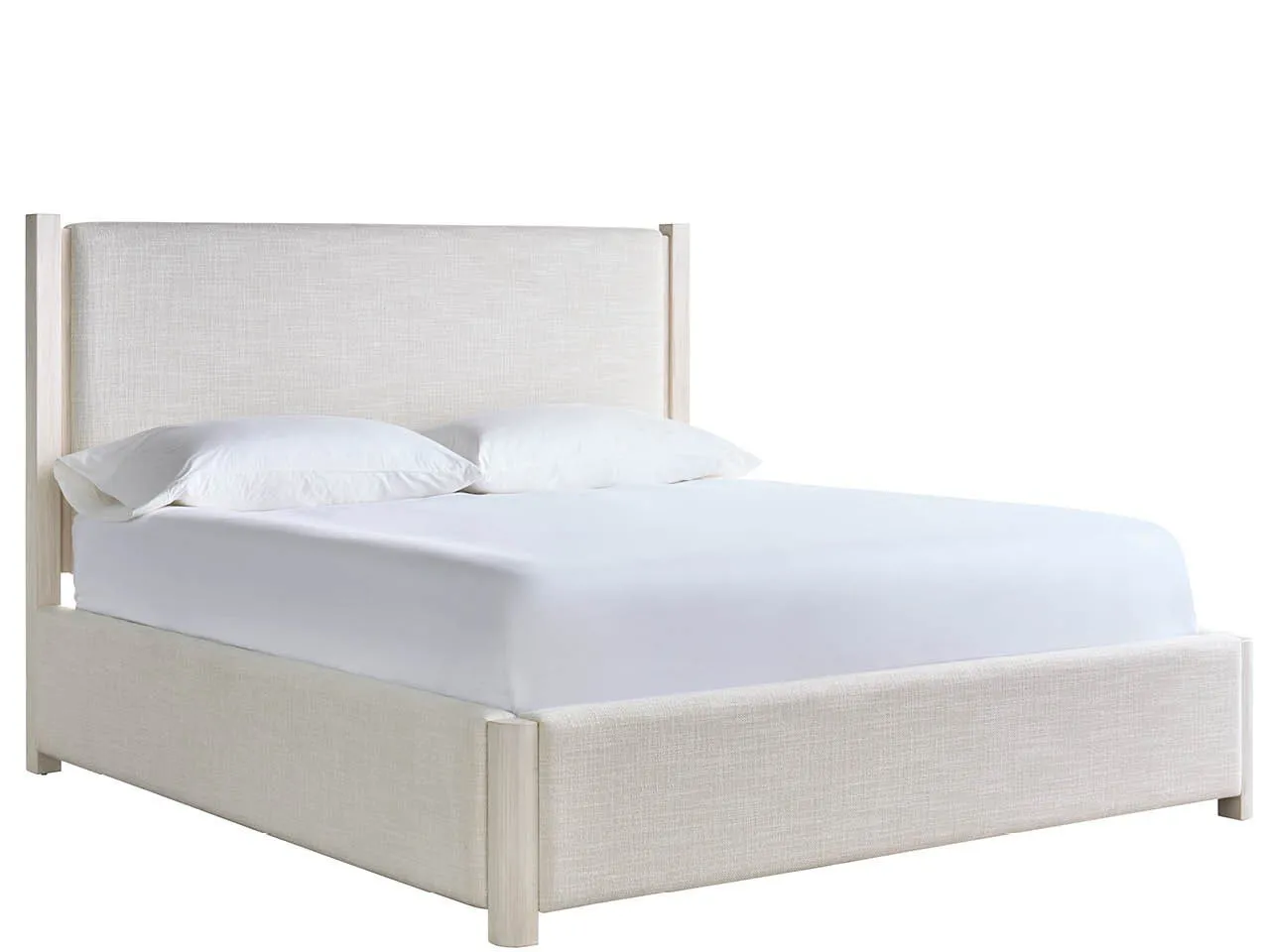 The River Rock Upholstered Bed presents a harmonious blend of comfort and architectural detail. Its light and airy River Rock finish frames a softly upholstered headboard and base, creating a serene and inviting focal point for your bedroom. The bed's clean lines and natural wood accents evoke a sense of refined tranquility, perfect for a restful retreat.
