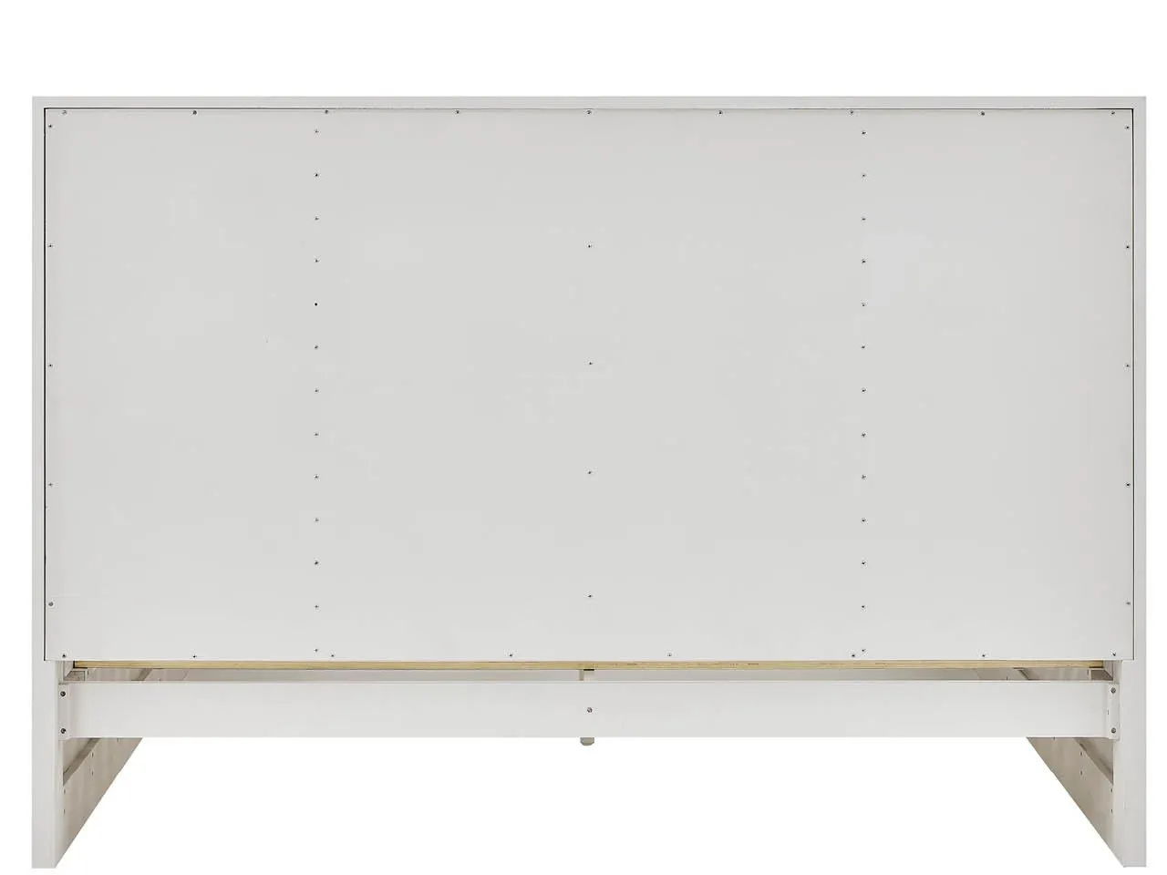 The Shoreline Panel Bed features clean, distinctive lines of wide louvered panels that bring architectural interest in a crisp white Shoreline finish. This bed brings coastal-inspired calm to your bedroom.