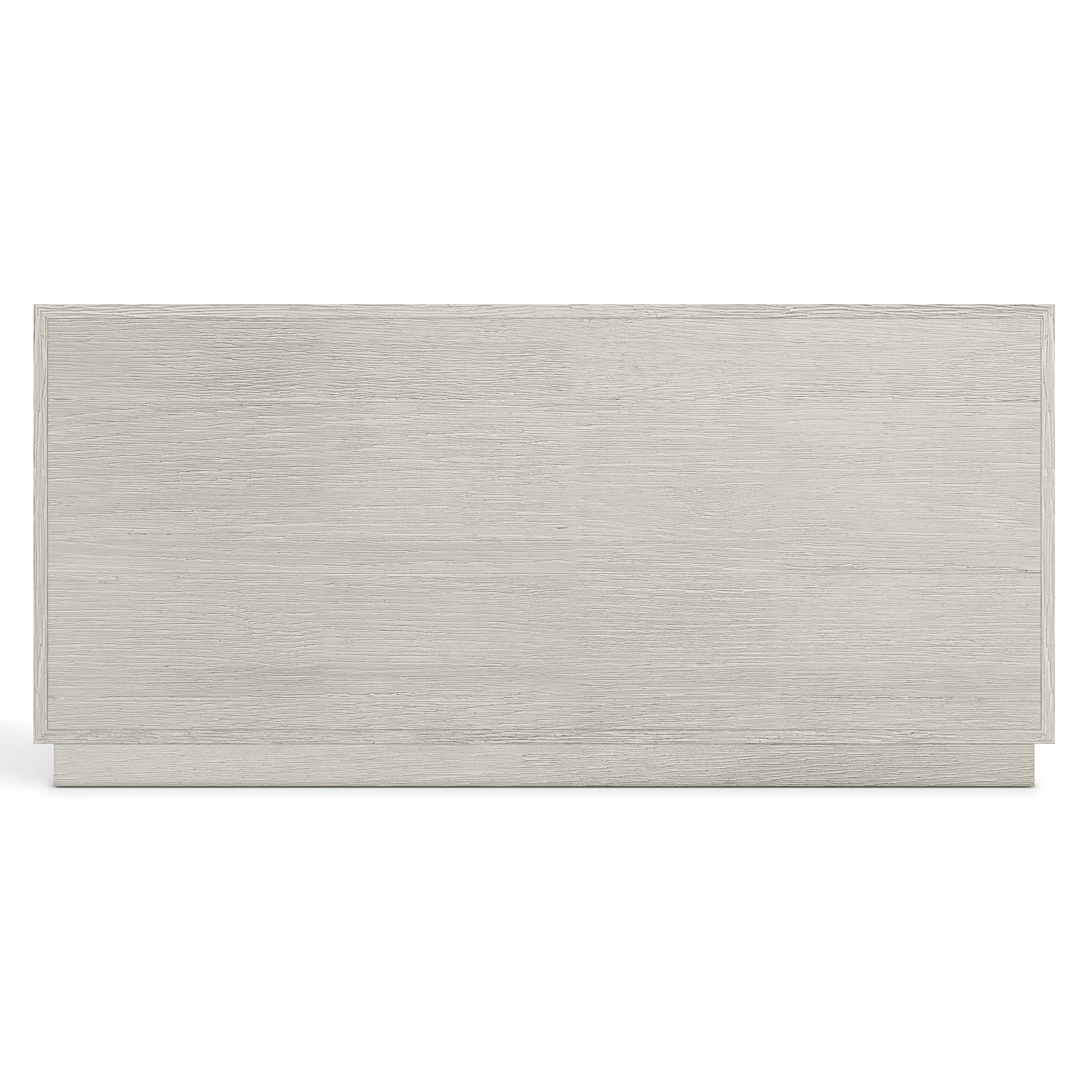 Oak Dresser in Larza finish. Six push-to-open, Raised panel drawer fronts with random Sandblasted Aluminum overlays in Satin Nickel finish. Plinth base. Adjustable glides. Anti-tip kit. Not suitable for TV use.