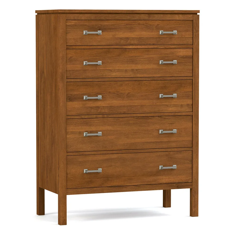 Make the most of a smaller space with the Dwyer Tall Chest. Five drawers with undermount drawer slides provide plenty of storage, and a bottom dust panel and smooth UV-cured interiors are thoughtful details on a piece that looks beautiful in any Origins by Stickley finish. Available with Express Ship in your choice of Origins by Stickley finish and hardware.