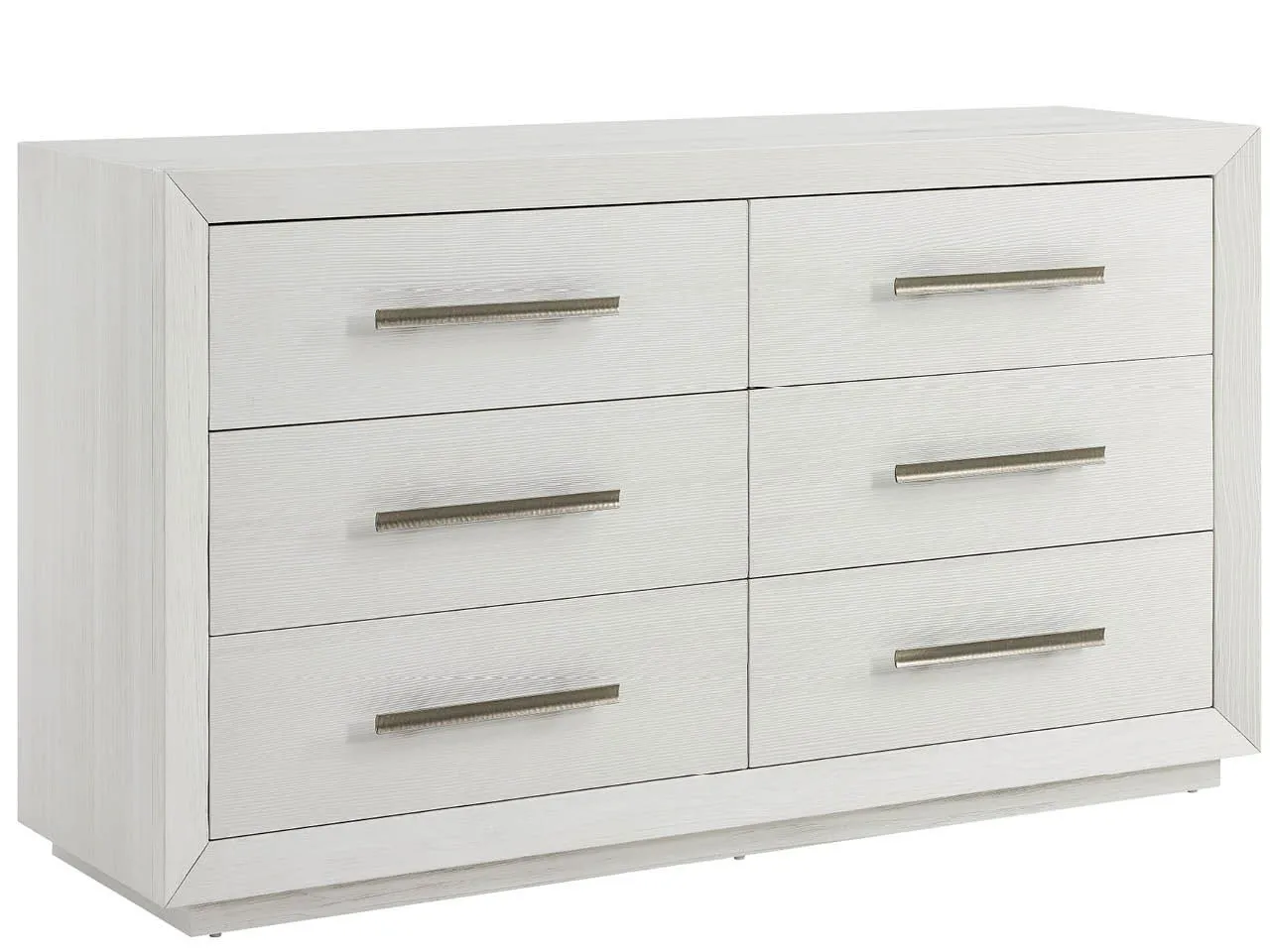 The Shoreline Dresser offers six spacious drawers with sleek bar pulls, making it both stylish and practical for everyday use. This dresser includes felt-lined jewelry trays in the top drawers and provides exceptional storage capacity with its fresh Shoreline finish.