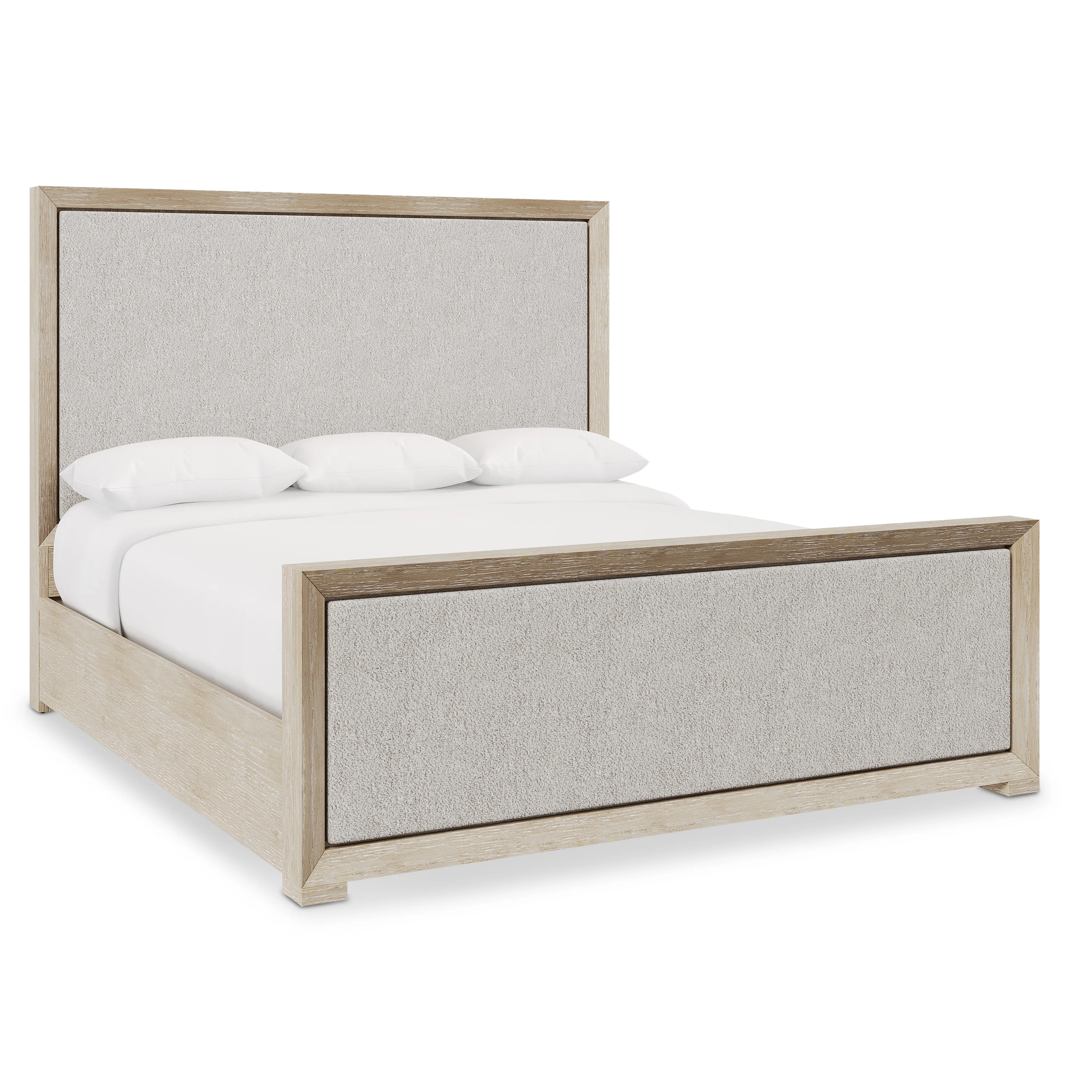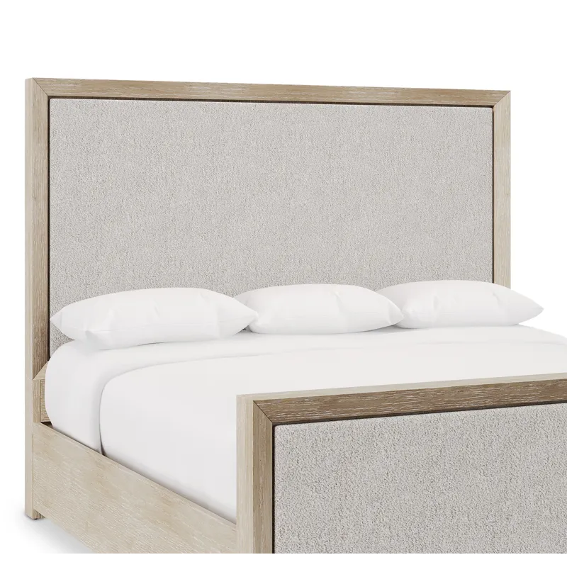 - Wood-framed panel headboard in Tawny finish with inset upholstered panel in fabric B102