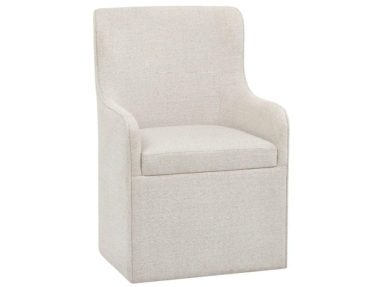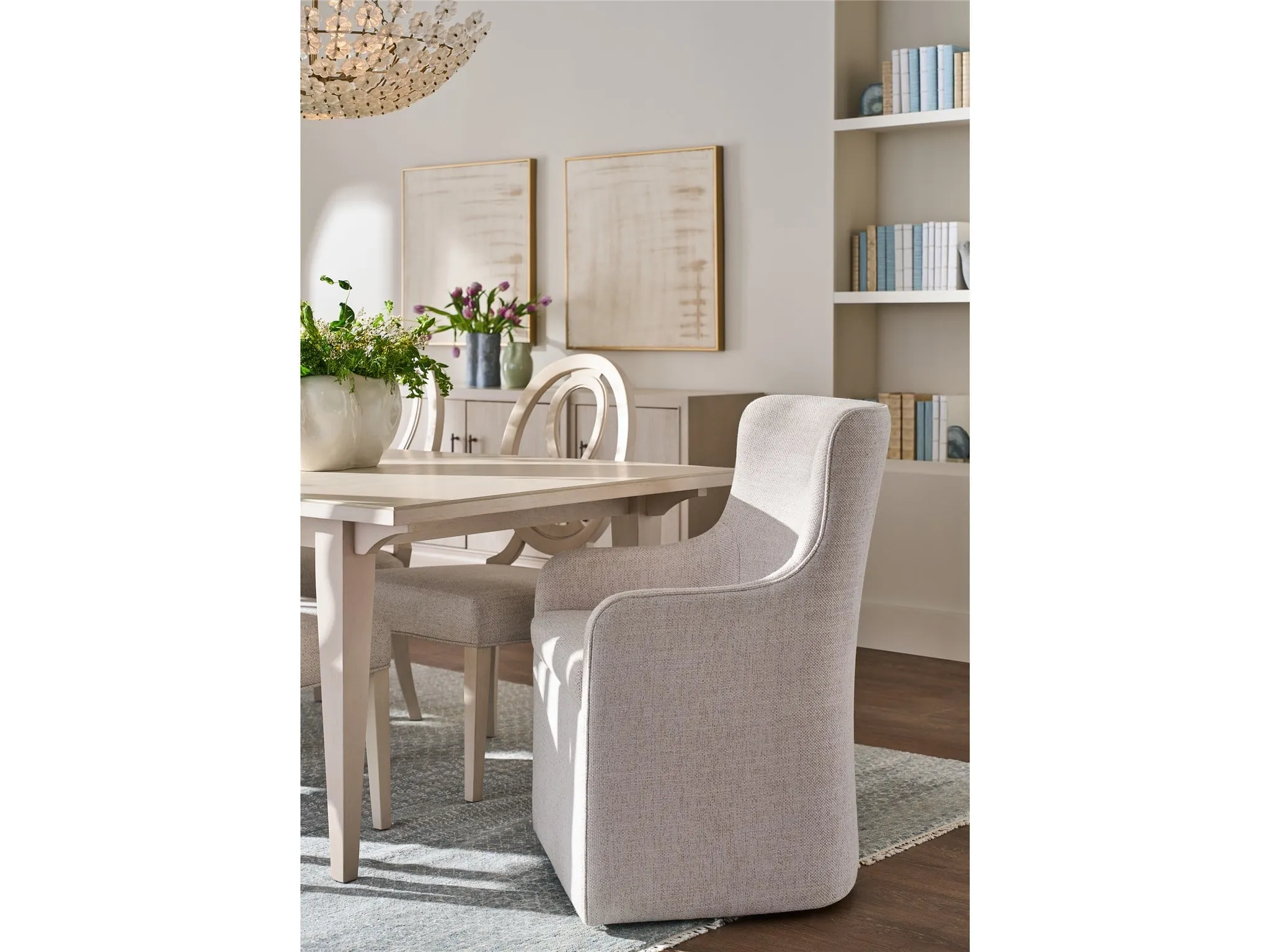 The Birchaven Arm Chair is a fully tailored and luxurious dining seat, upholstered entirely in the handsome and durable Bilma Natural fabric. Fitted with discreet casters, this sophisticated piece can be easily repositioned, blending elegance with effortless utility.