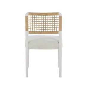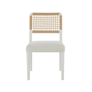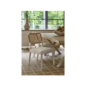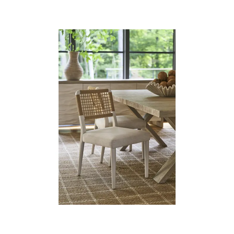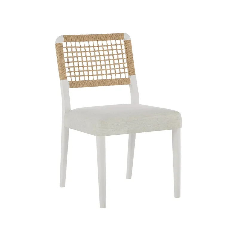 The Shoreline Chair combines a Danish cord woven backrest with a comfortable Crypton Nomad Snow upholstered seat for textural interest. This dining side chair in crisp Shoreline white finish brings a fresh, airy feel to your dining space.
