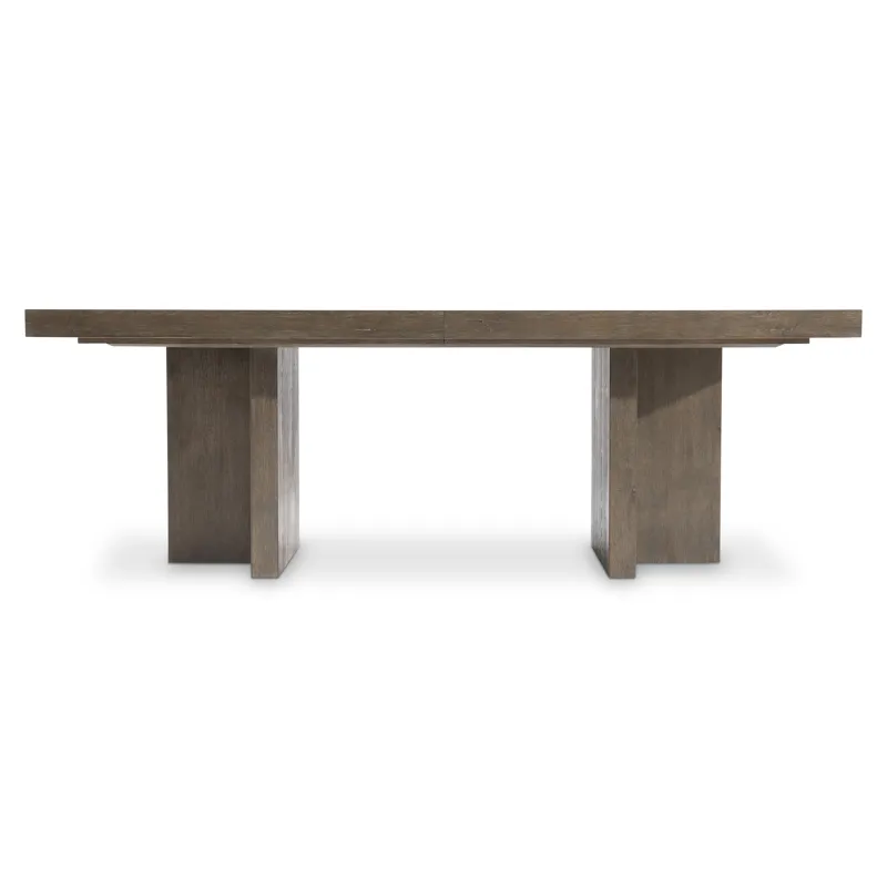 Showcasing the hallmarks of Arts and Crafts style, the Outline dining table takes simple shapes and fashions them into a bold organic statement. Rectilinear panels connect for a angled base that supports the bold top. Deeply textured wood is finished in Cassel.