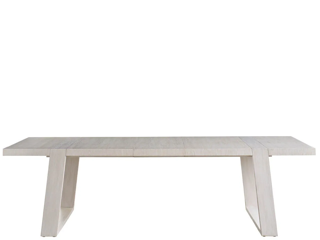 The River Rock Dining Table stands out with its modern, architectural design, featuring integrated legs and a sleek sled base, all finished in a light and airy River Rock. Crafted with short grain banding along the edges, this table brings a refined, clean silhouette to your dining space, perfect for both everyday meals and elegant gatherings.