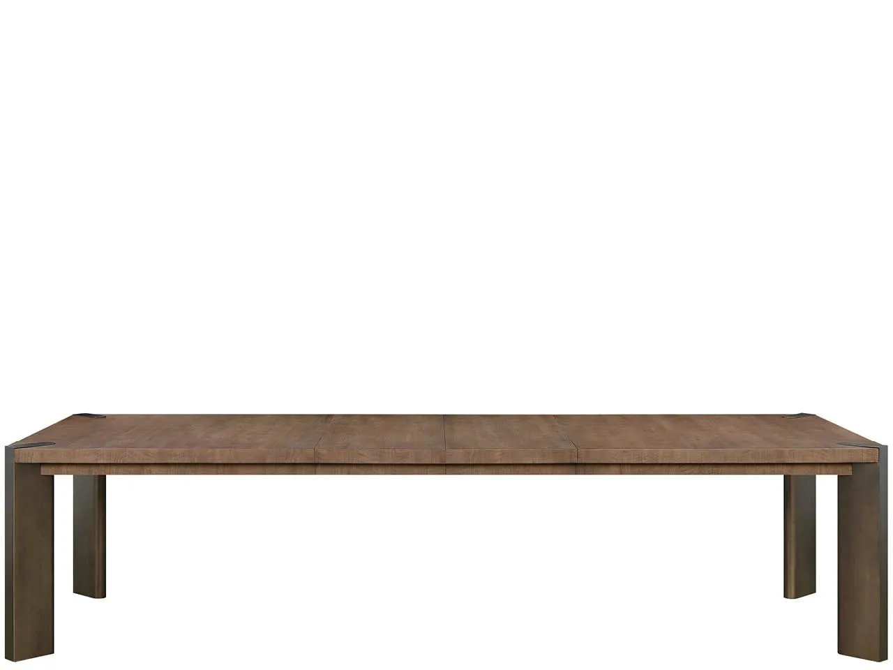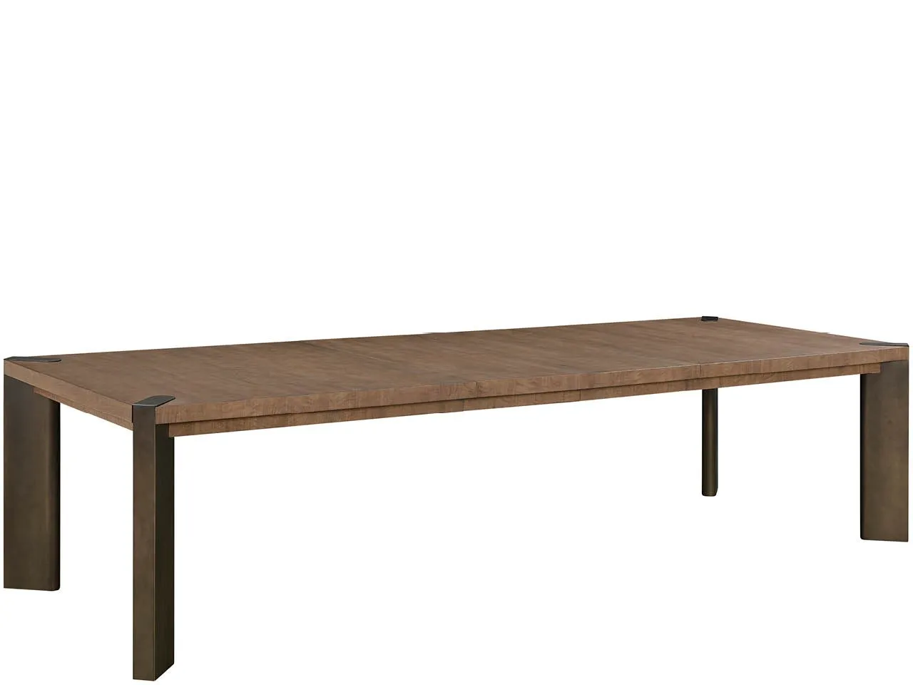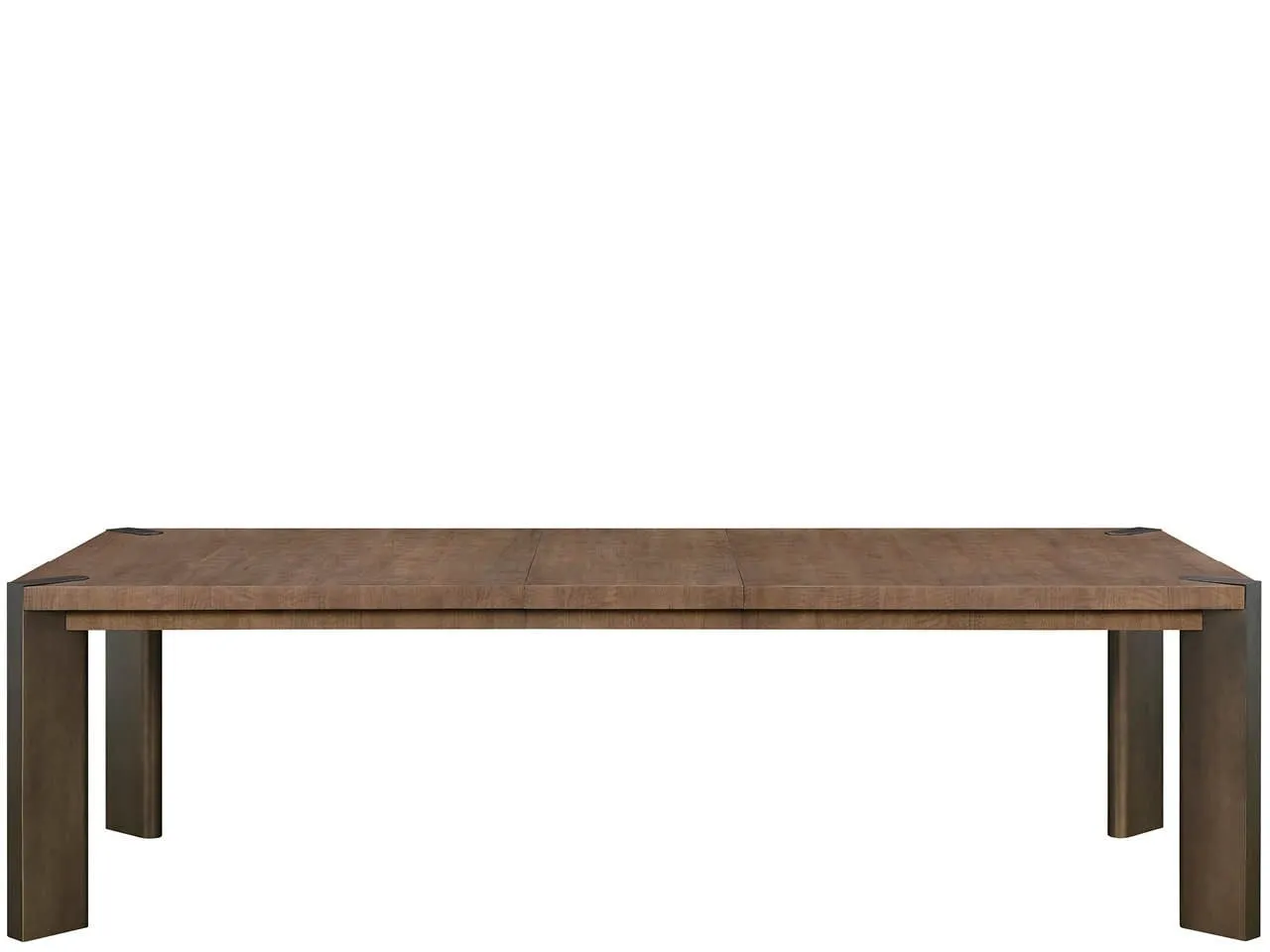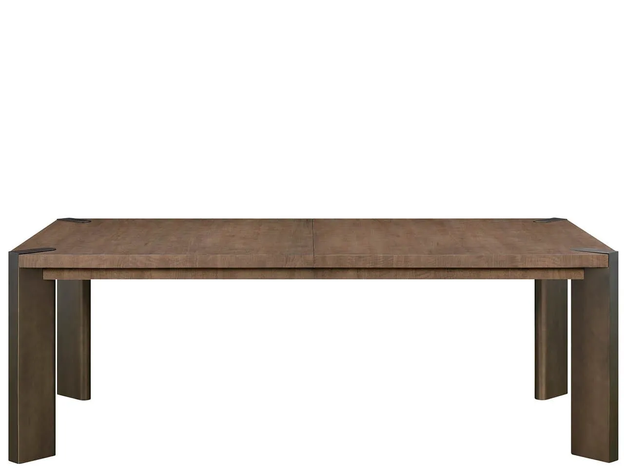 Designed for the host who commands attention, the Haze Dining Table features the dramatic, figured Haze Walnut finish accented by subtle Smoked Gold metal feet. This sophisticated piece expands effortlessly with two self-storing leaves, ensuring room for every intimate occasion.