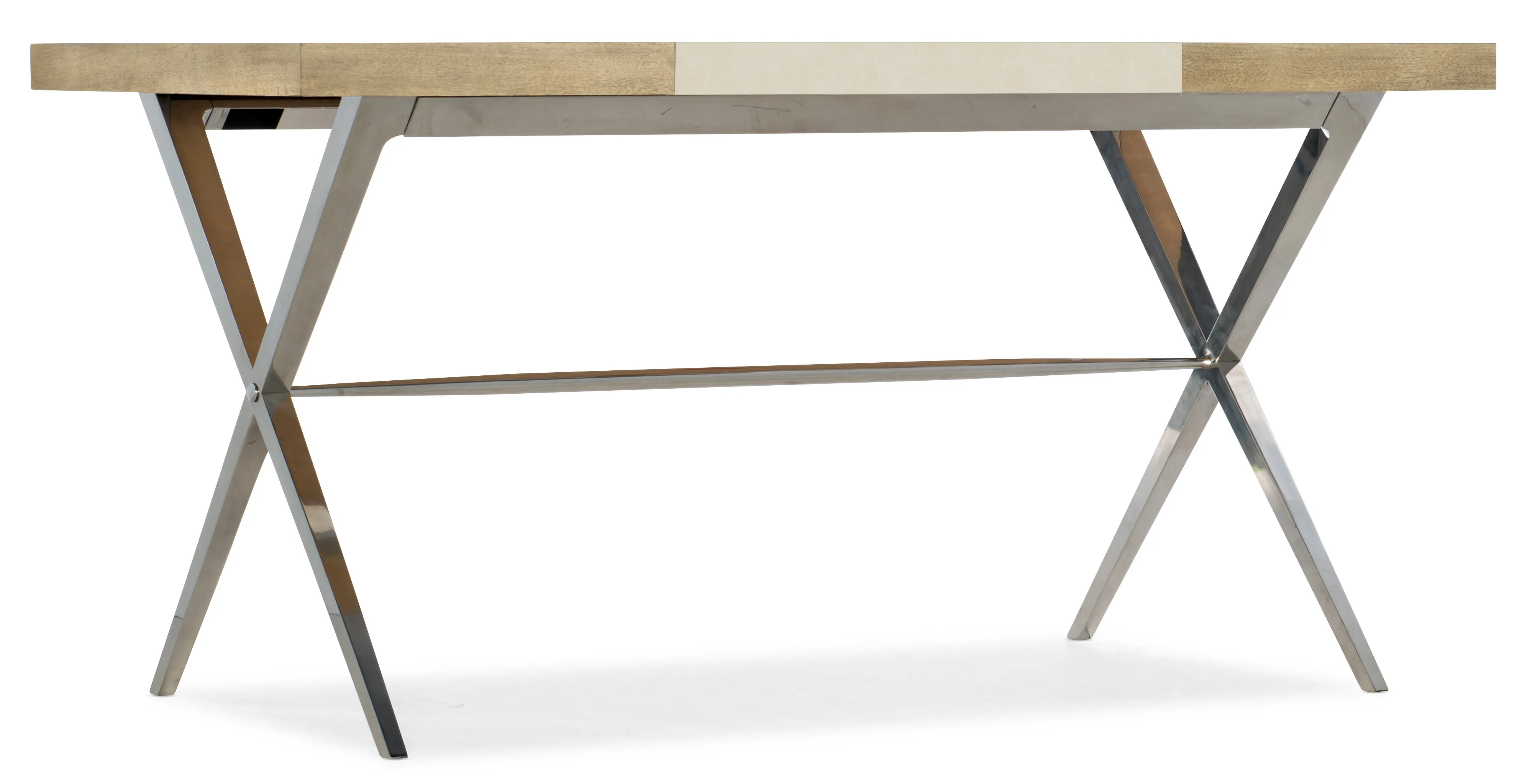 Material: Rubberwood and Hardwood Solids with Bleached Quartered Figured Black Walnut Veneers with Stainless Steel and Faux Leather