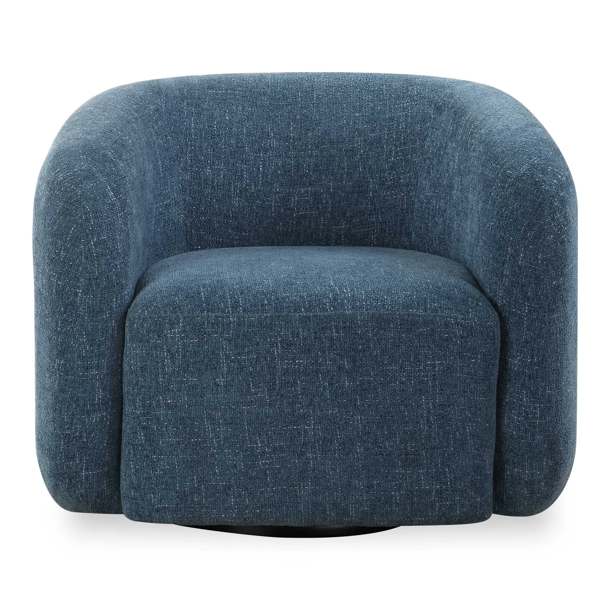 Elevate Your Living Space With This Barrel Style Swivel Chair, With A Dramatic Channeled Back Covered In A Knubby Blueberry Chenille. Rests On A Matte Black Swivel Base.