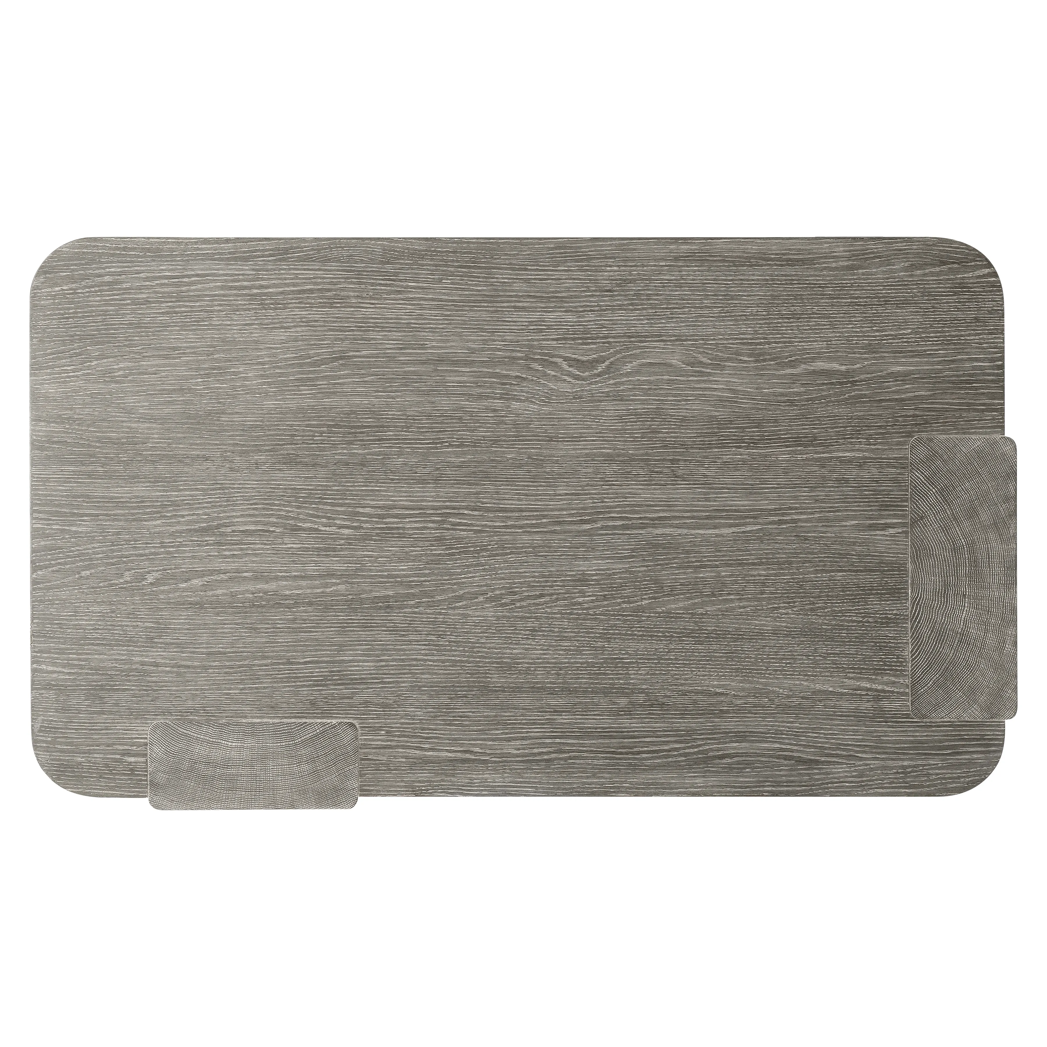 Wirebrushed White Oak Cocktail Table in Puma finish. Adjustable glides.
