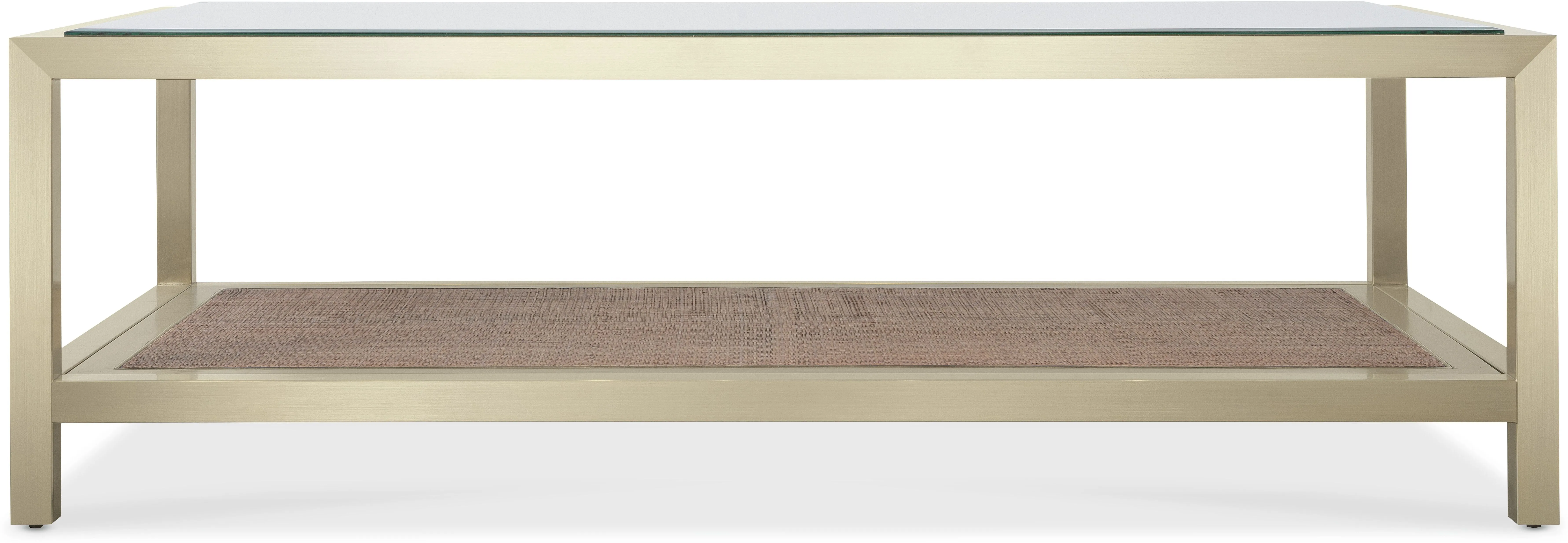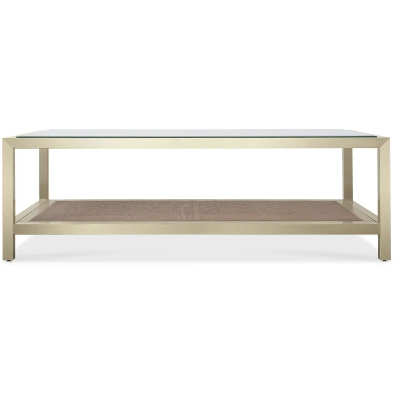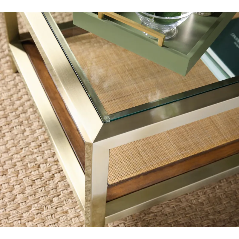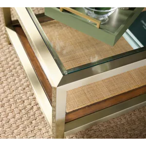 The Melange Raising Cane Cocktail Table is a statement piece for your living room. Its stainless steel frame is both sturdy and elegant, while the glass top and bottom cane shelf framed in wood offer additional storage or display space. This rectangular cocktail table brings together steel, glass, and cane in a transitional design that bridges modern style with timeless craftsmanship, making it perfect for both contemporary and traditional homes.