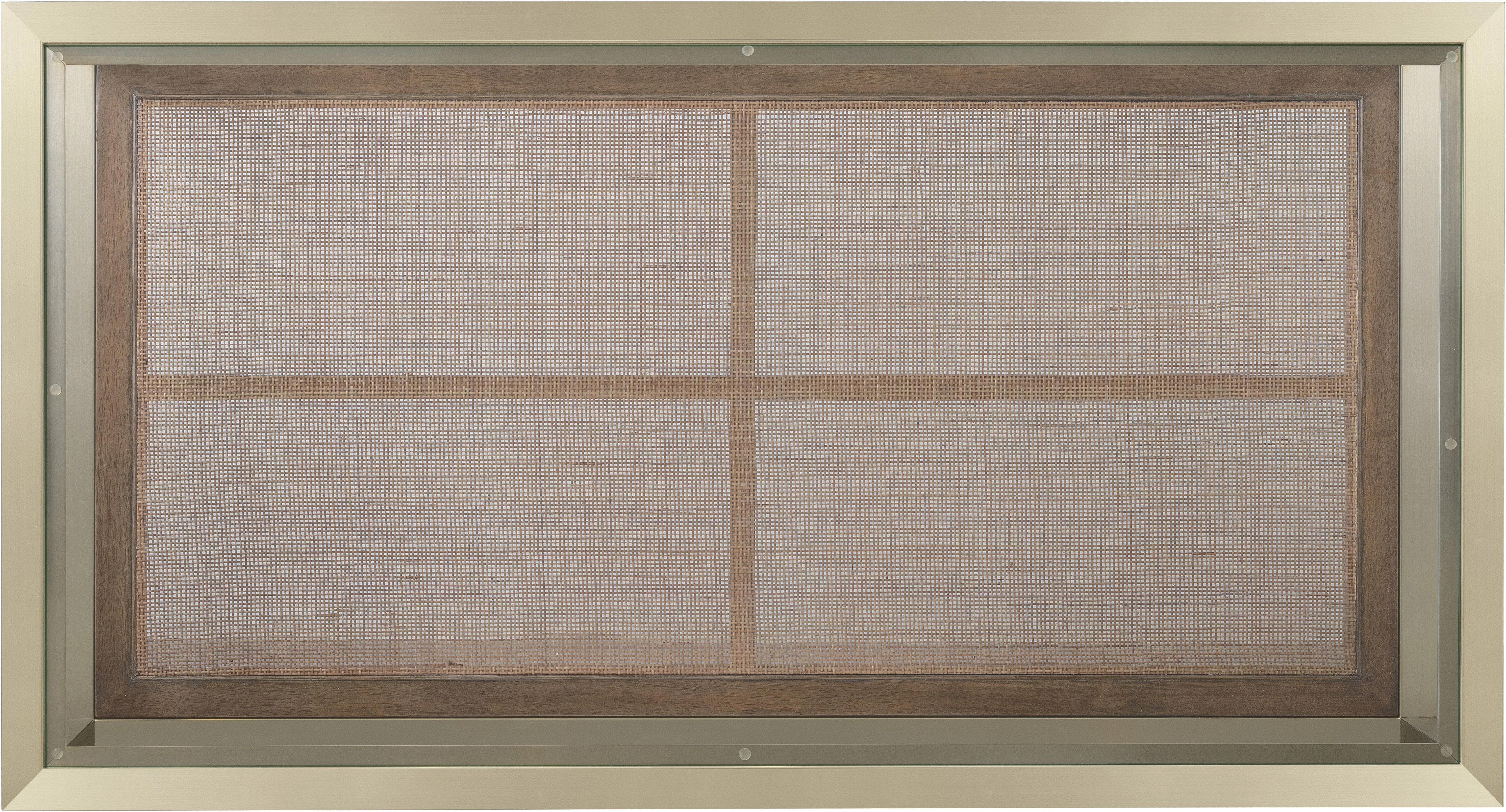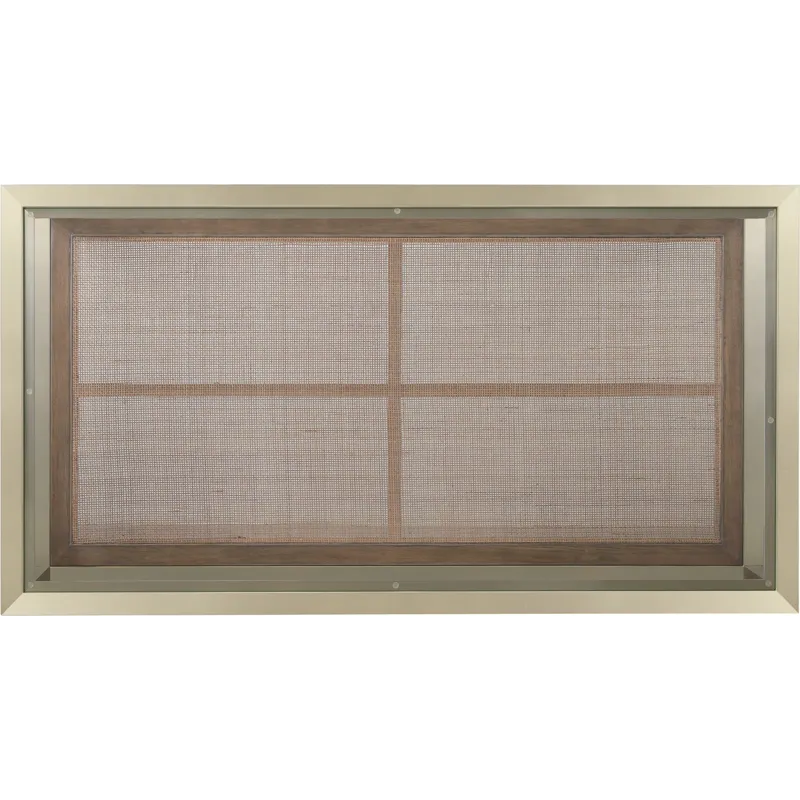 - Bottom fixed wood-framed cane shelf with glass inserts
