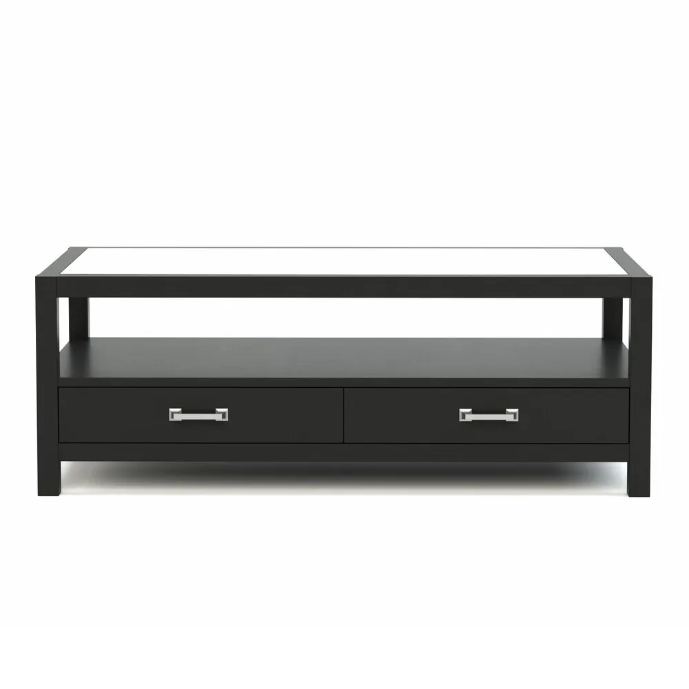 A new iteration of our popular Dwyer Rectangular Coffee Table trades its floating wood tabletop for a smooth panel of inset glass, while retaining the collection's clean modern styling. A pair of soft-close drawers sits low to create open shelf space for books and magazines, and, as with all Origins by Stickley pieces, you can customize the table with your choice of finish and hardware.