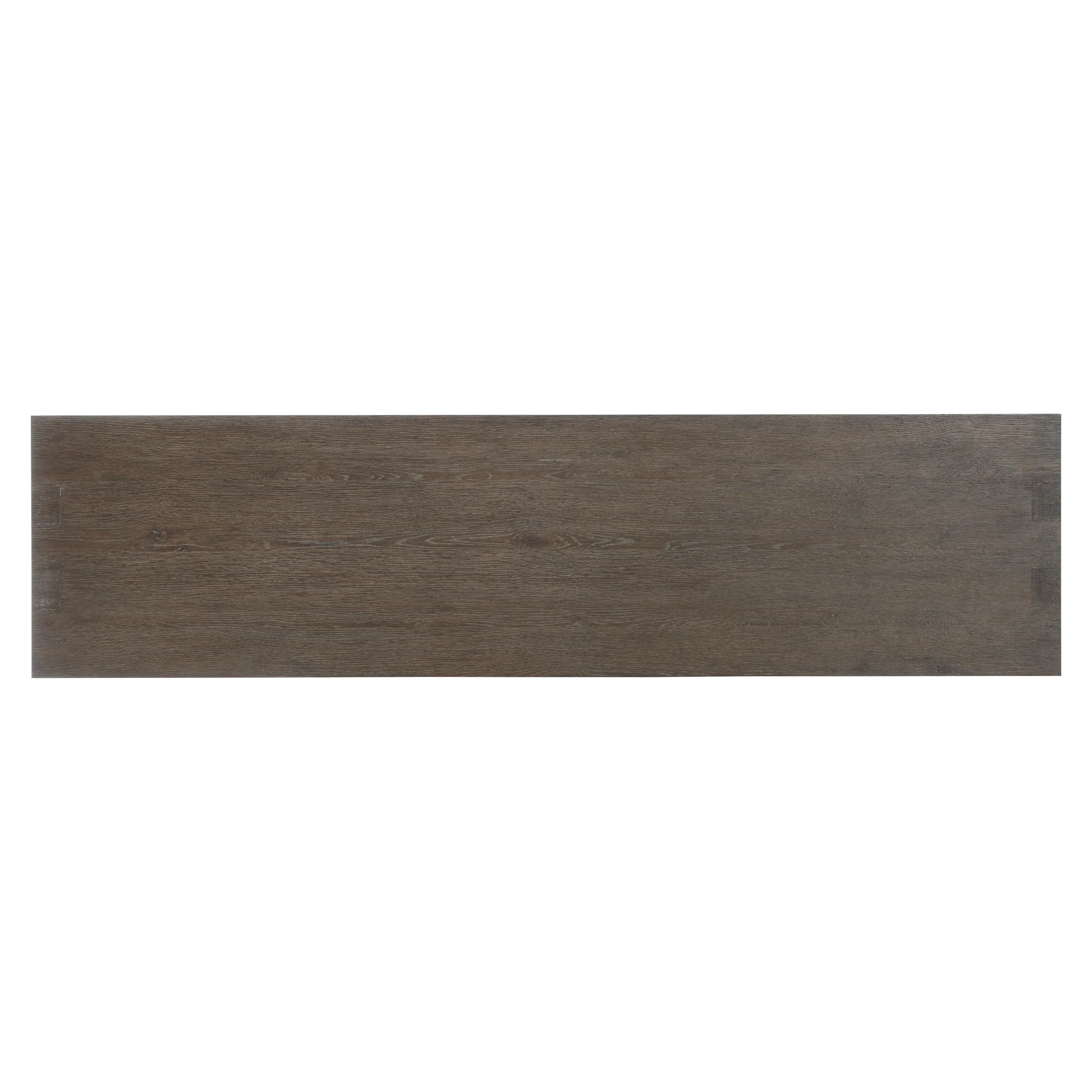 Inspired by the architectural style of Frank Lloyd Wright, the Outline console table highlights the bold forms and simple lines of the Arts and Crafts movement. Deeply textured wood finished in Cassel is fashioned into geometric shapes that showcase craftsmanship. Rectilinear panels bisect with open sections at each end.
