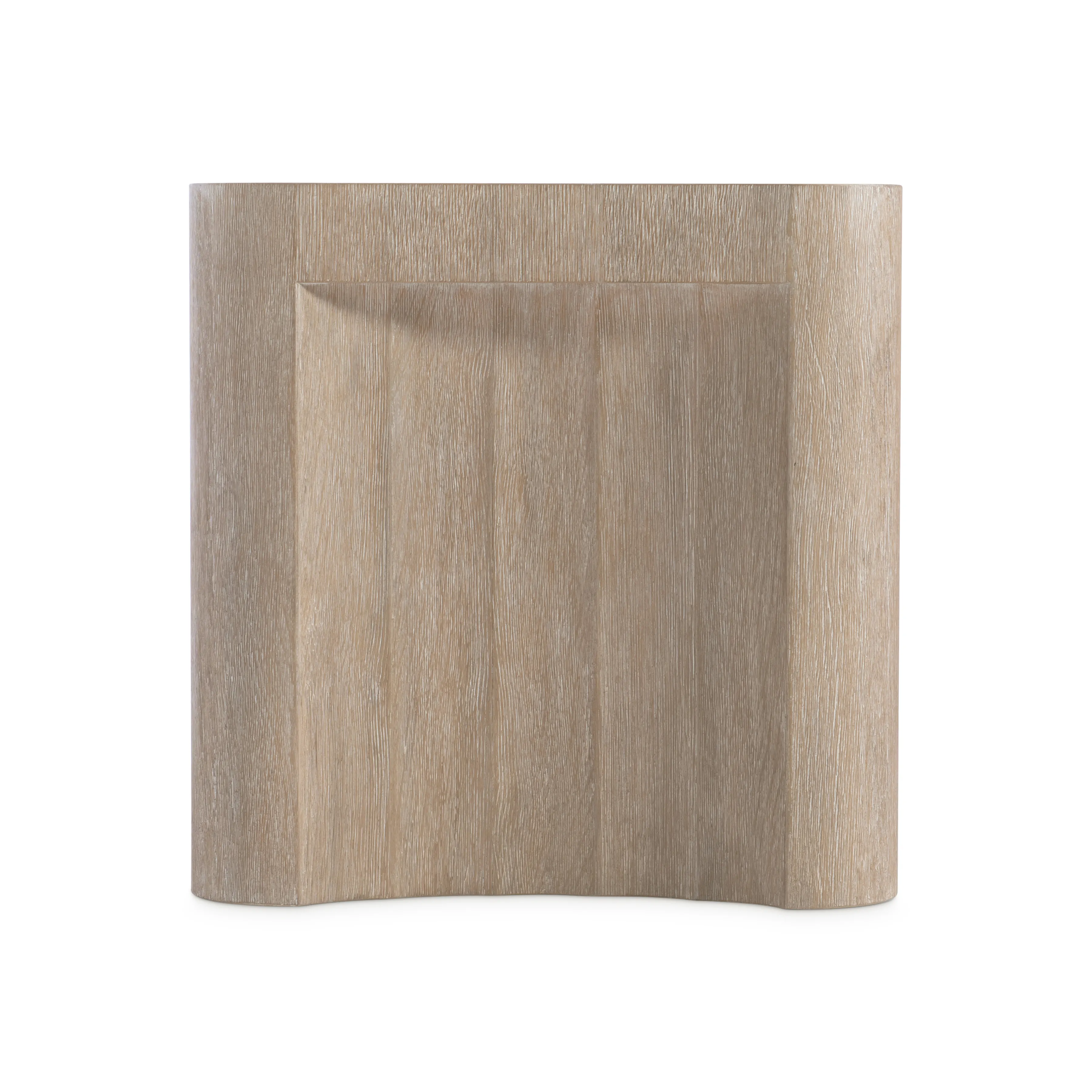 The base of the Loggia side table offers subtle fluting, a nod to the architectural column that inspired its design. The sides curve inward to create a concave curve at the floor, while a square top is softened with rounded corners.