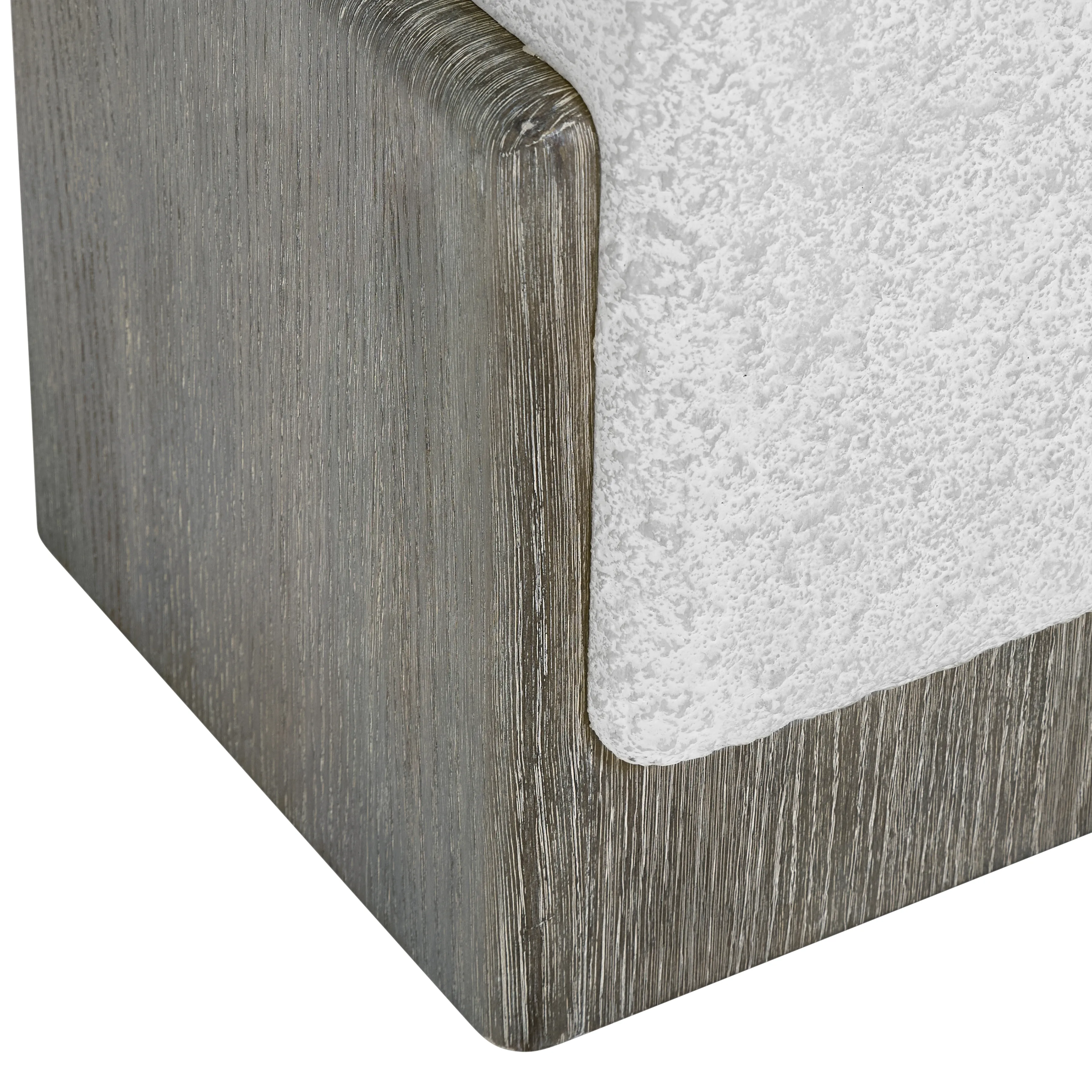 Accent Table with smooth top and textured Faux Stone sides in Millstone finish. Wirebrushed Oak side panels in Puma finish. Adjustable glides.