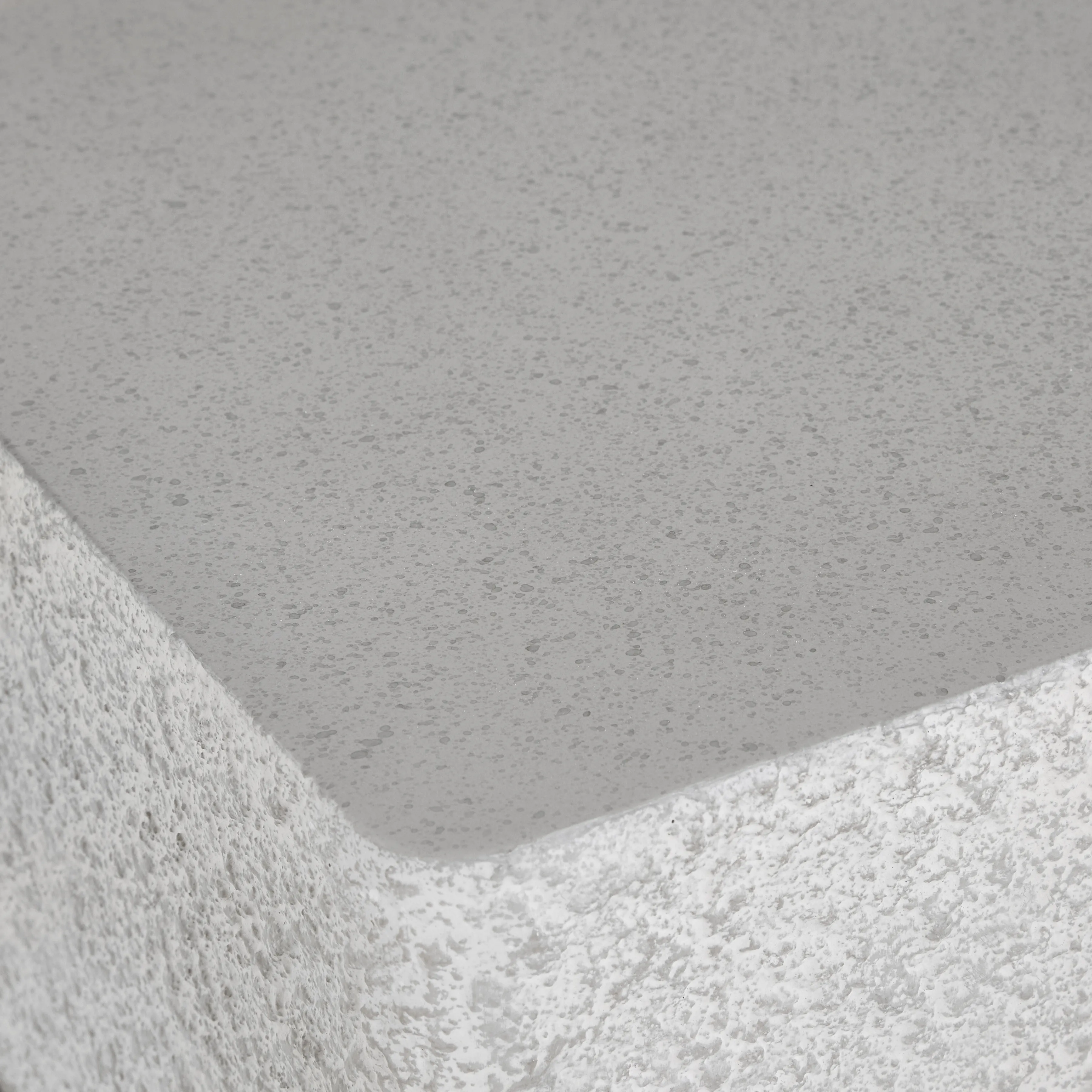 - Smooth top and textured faux stone sides in Millstone finish set inside wirebrushed oak base in Puma finish