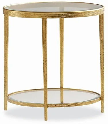 Features Side Table, Metal, Round, Glass, Shelf, Brass