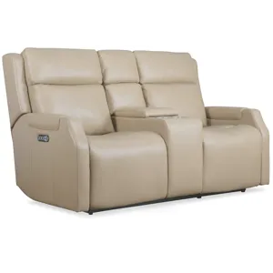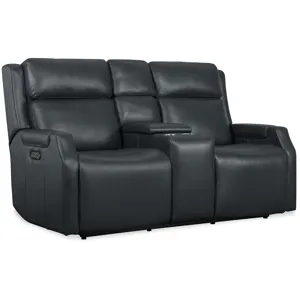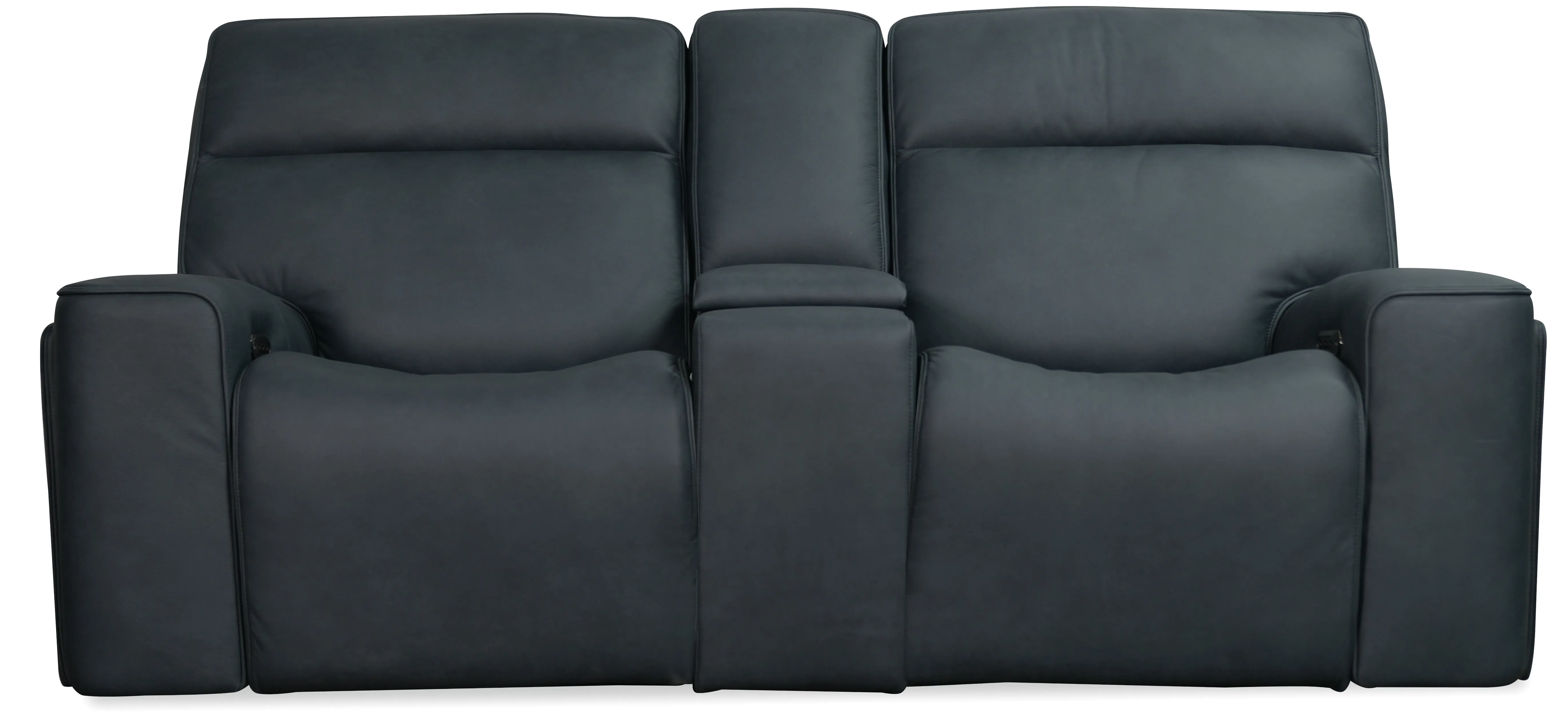 A multitasking marvel, the Riverton Gliding Console Loveseat boasts dual recliners with power headrest and lumbar, a center console with hidden storage, and pop-out cupholders. Upholstered in Dante Afterdusk leather, this loveseat is the epitome of form meets function for contemporary living.