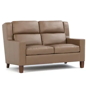 Our Woodlands upholstery creates handsome centerpieces that anchor a room, with tall, upright profiles offset by smaller-scale arms. This Track Arm Loveseat is a stationary option that seats two comfortably and features a clean, modern arm style, while eight-way hand-knotted springs provide even support and comfort. Available for Express Ship in three Selvano leathers with your choice of any Maple finish.
