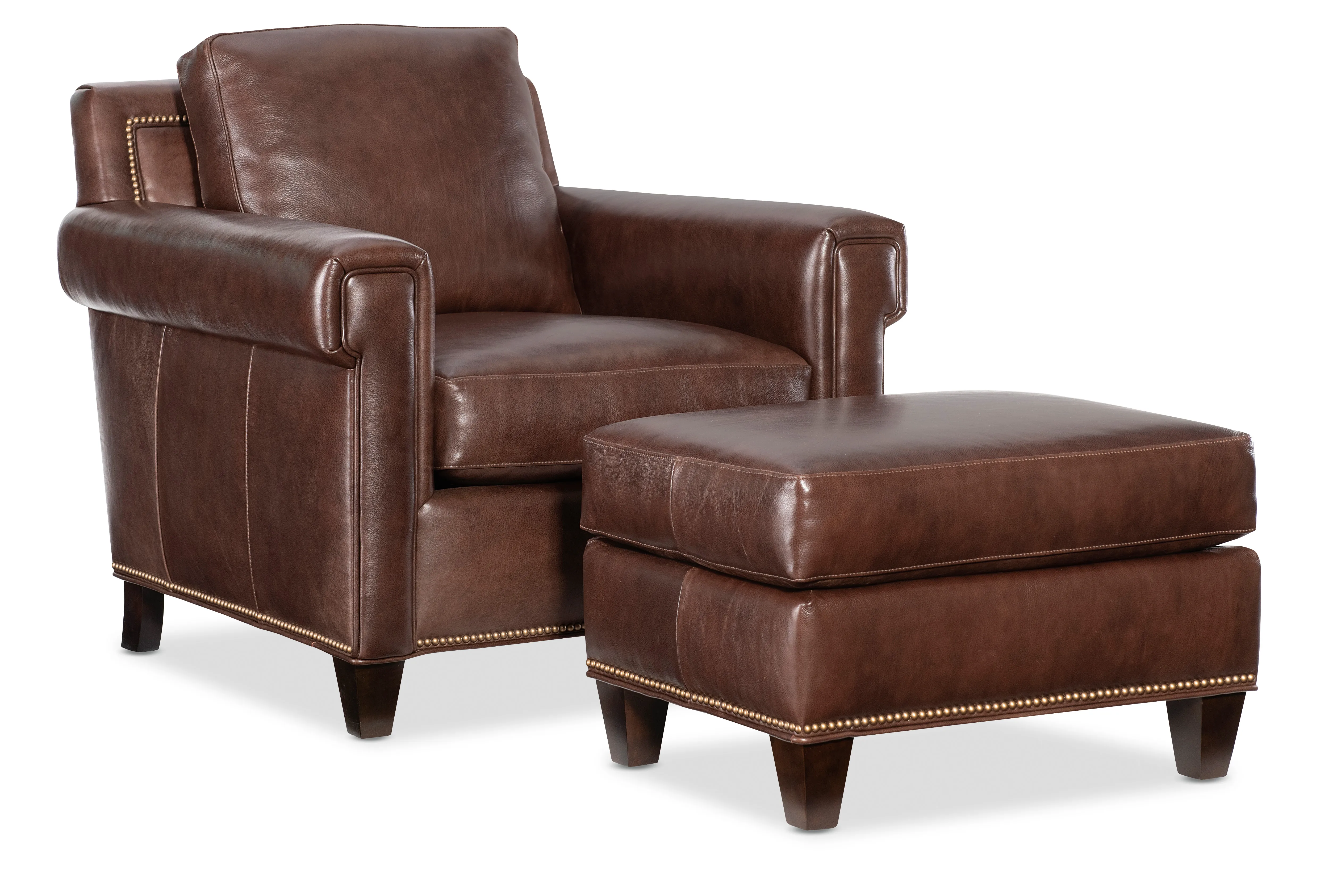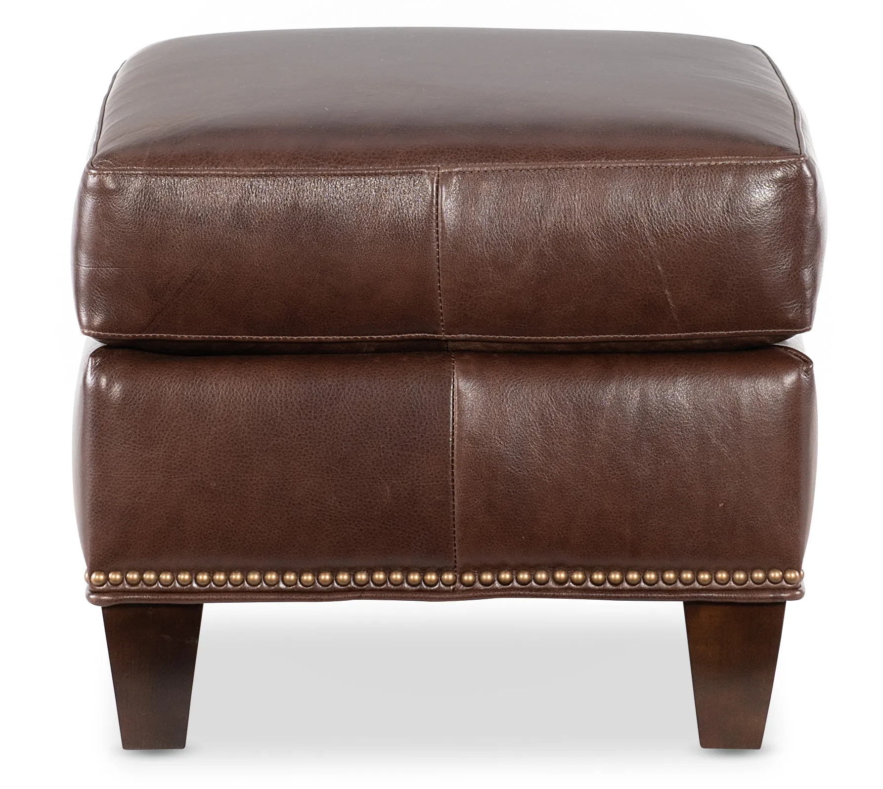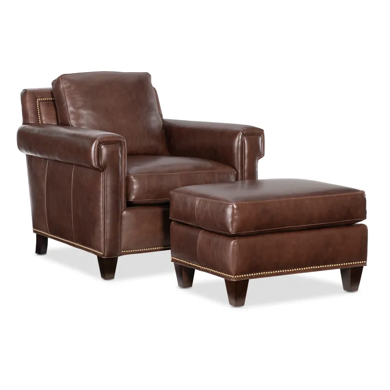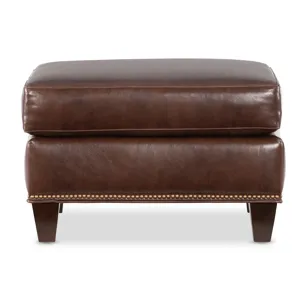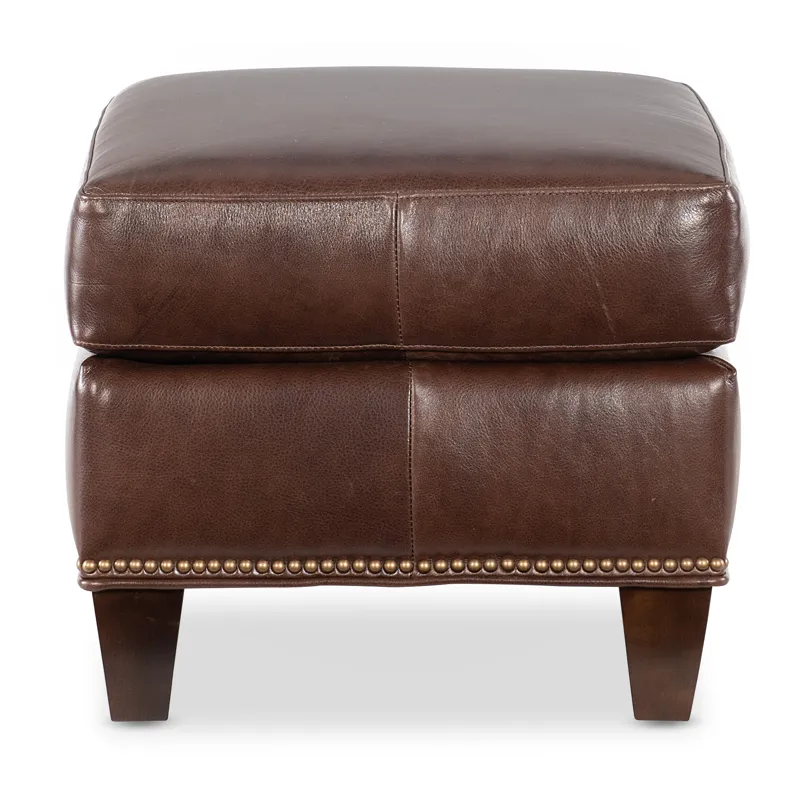 Complete your Mills seating ensemble with the Mills Ottoman by Bradington-Young. This leather ottoman combines transitional elegance with practical comfort, featuring a rectangular silhouette, nailhead trim, and tapered wood legs. Use it as a footrest, extra seat, or even a coffee table alternative. Available in hundreds of leather and fabric combinations, it’s a flexible piece that adds polish to any room.