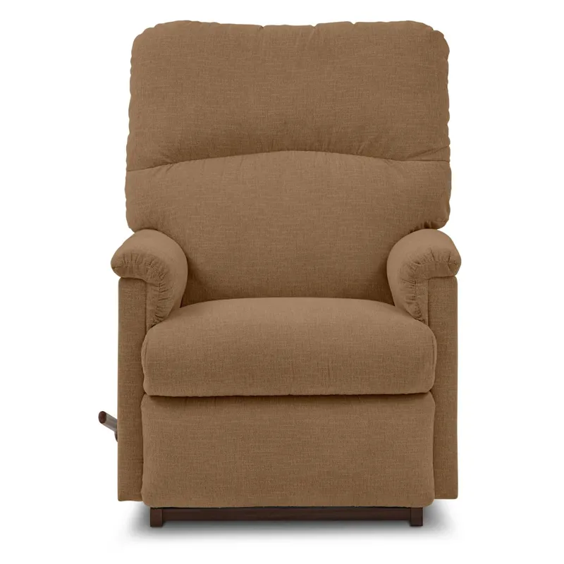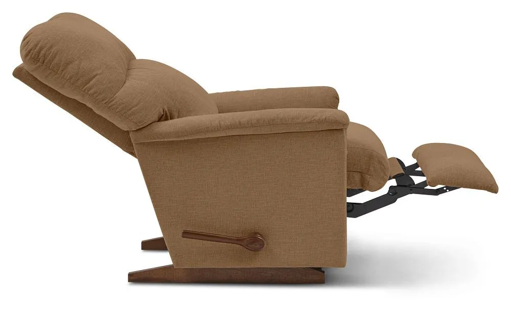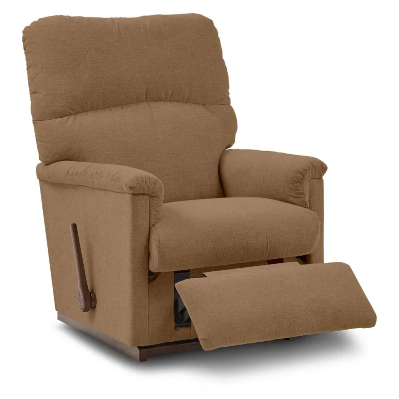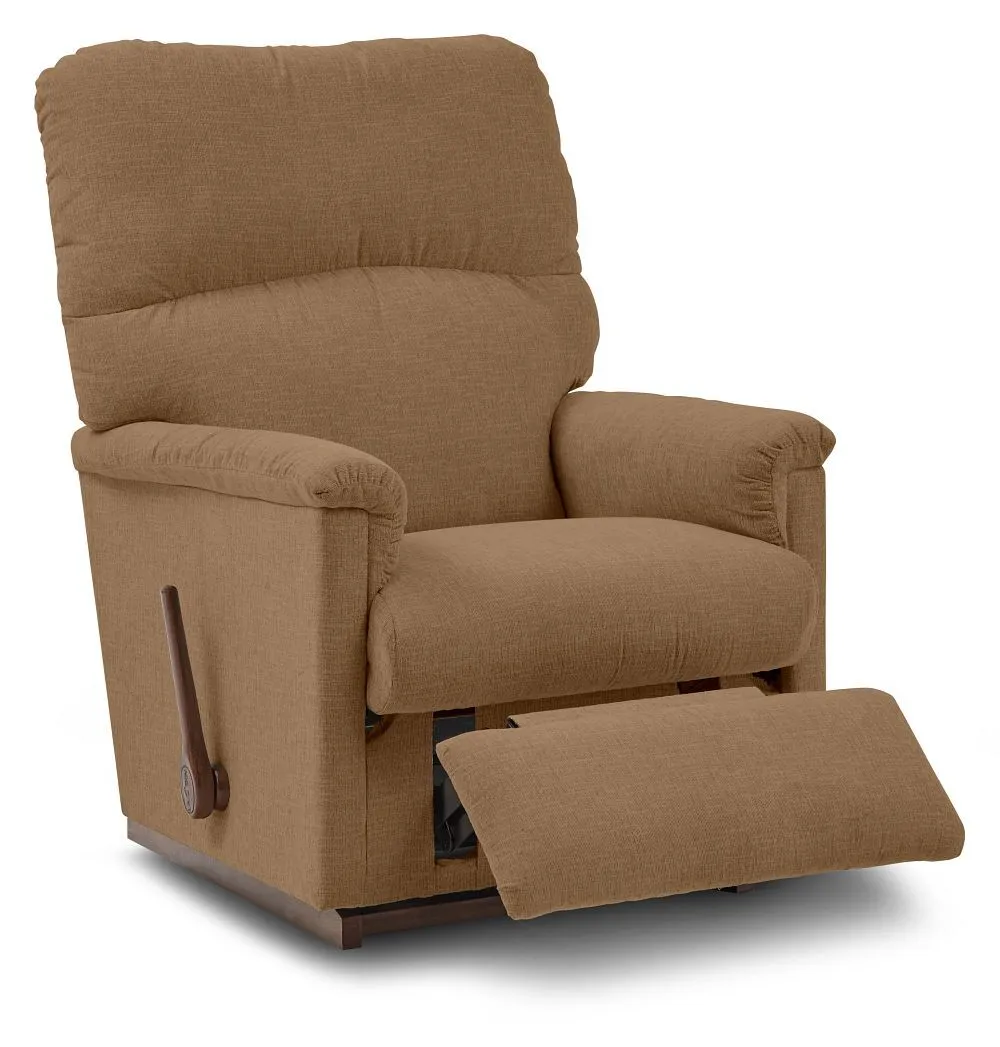 Our Collage Rocking Recliner is a family favorite that's easy to love. Its petite scale and updated style allow it to blend into just about any room. Collage features a bullnose (rounded edge) seat, padded flared arms and a decorative pull in the back cushion. Simply use the convenient handle on the outside arm to raise the legrest for reading, relaxing or watching TV. When you're not reclining, it's a relaxing rocker with a smooth, graceful motion. Make it yours with your choice of fabrics and other available upgrades.
