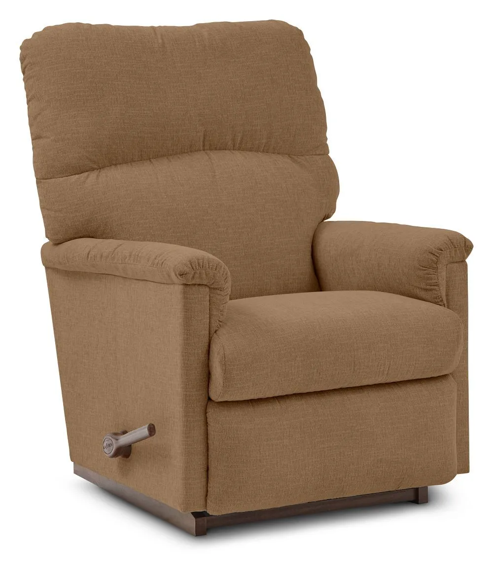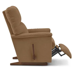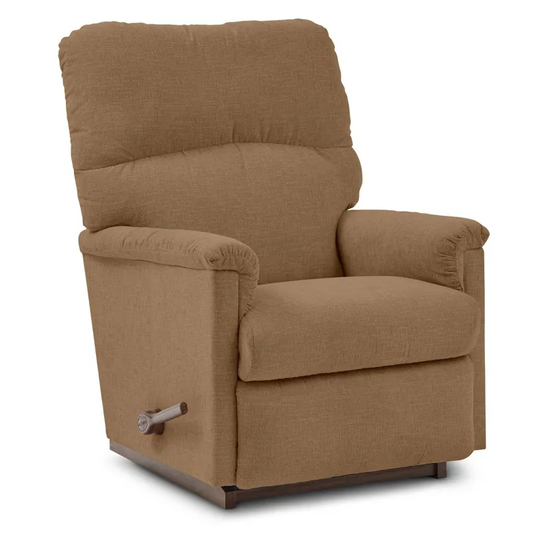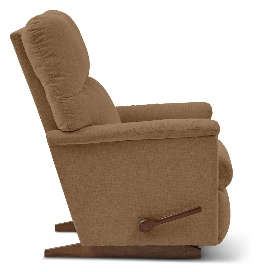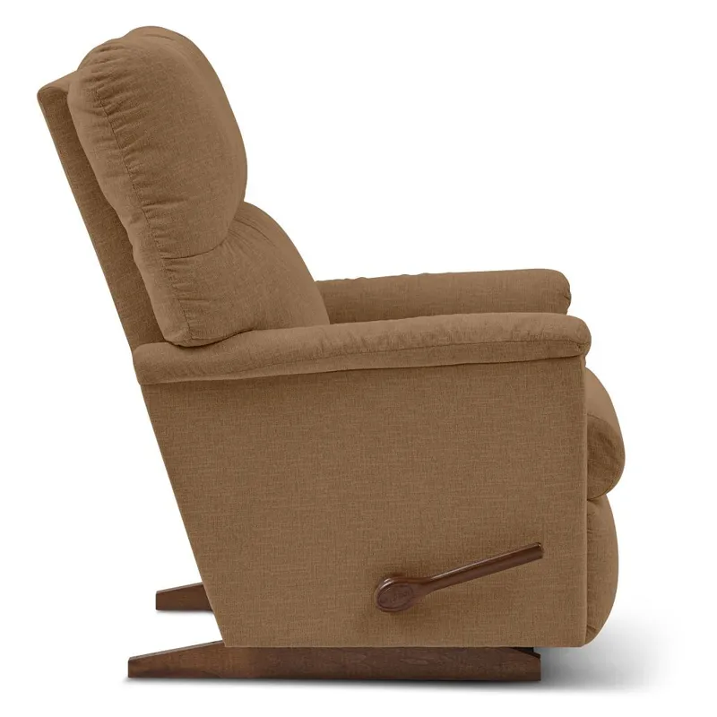 Our Collage Rocking Recliner is a family favorite that's easy to love. Its petite scale and updated style allow it to blend into just about any room. Collage features a bullnose (rounded edge) seat, padded flared arms and a decorative pull in the back cushion. Simply use the convenient handle on the outside arm to raise the legrest for reading, relaxing or watching TV. When you're not reclining, it's a relaxing rocker with a smooth, graceful motion. Make it yours with your choice of fabrics and other available upgrades.