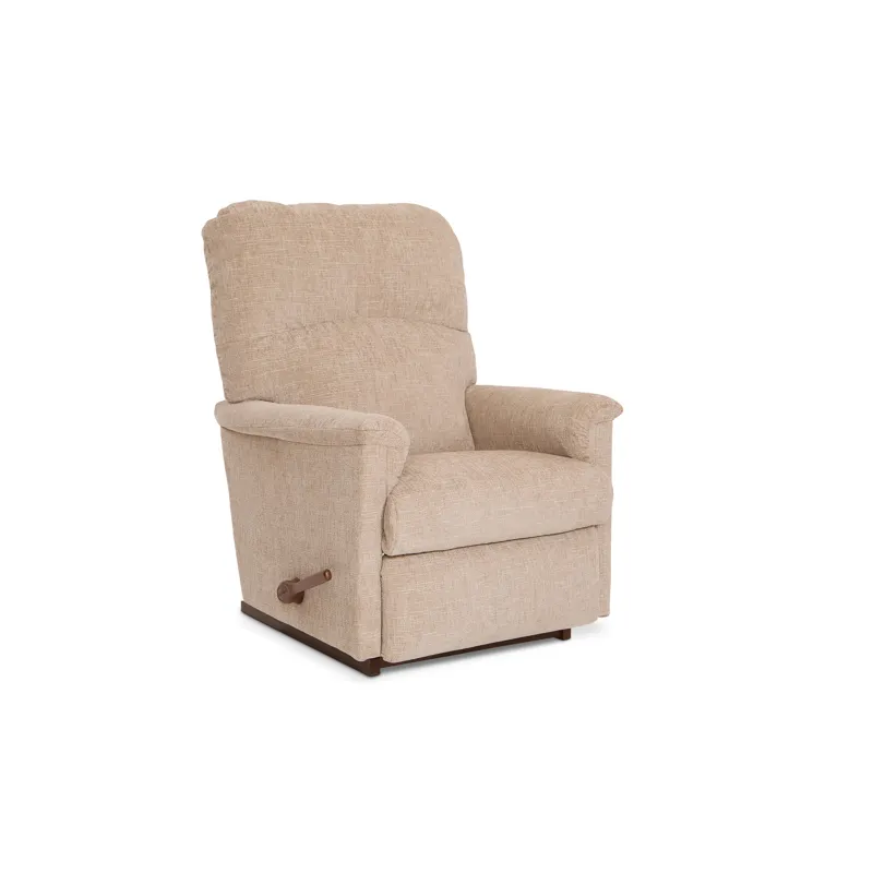 Our Collage Rocking Recliner is a family favorite that's easy to love. Its petite scale and updated style allow it to blend into just about any room. Collage features a bullnose (rounded edge) seat, padded flared arms and a decorative pull in the back cushion. Simply use the convenient handle on the outside arm to raise the legrest for reading, relaxing or watching TV.