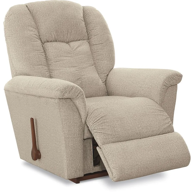 When it comes to comfort, bigger is better with the Jasper Rocking Recliner. Generous in scale, with flared pillow arms and a stitched pillow back cushion, it supports your whole body as you relax in the ultra-plush chaise seat. Patented La-Z-Boy technology allows the seat and back to move together or independently for a wide range of reclining positions, without activating the legrest. Jasper features a wide seat, so it's ideal for larger users. And when you're not reclining, it's a relaxing rocker with a smooth, graceful motion. Make it yours with your choice of fabrics and other available upgrades.
