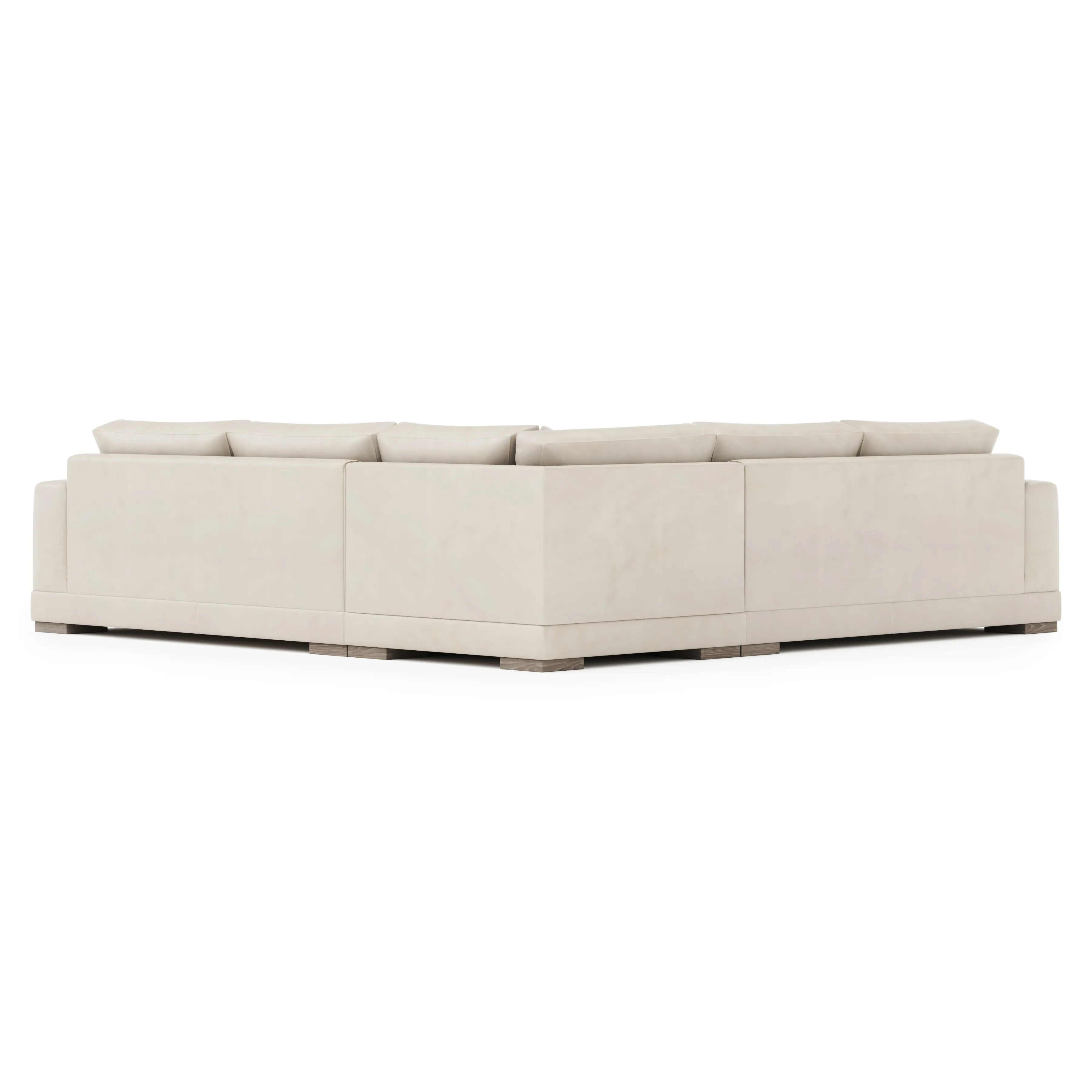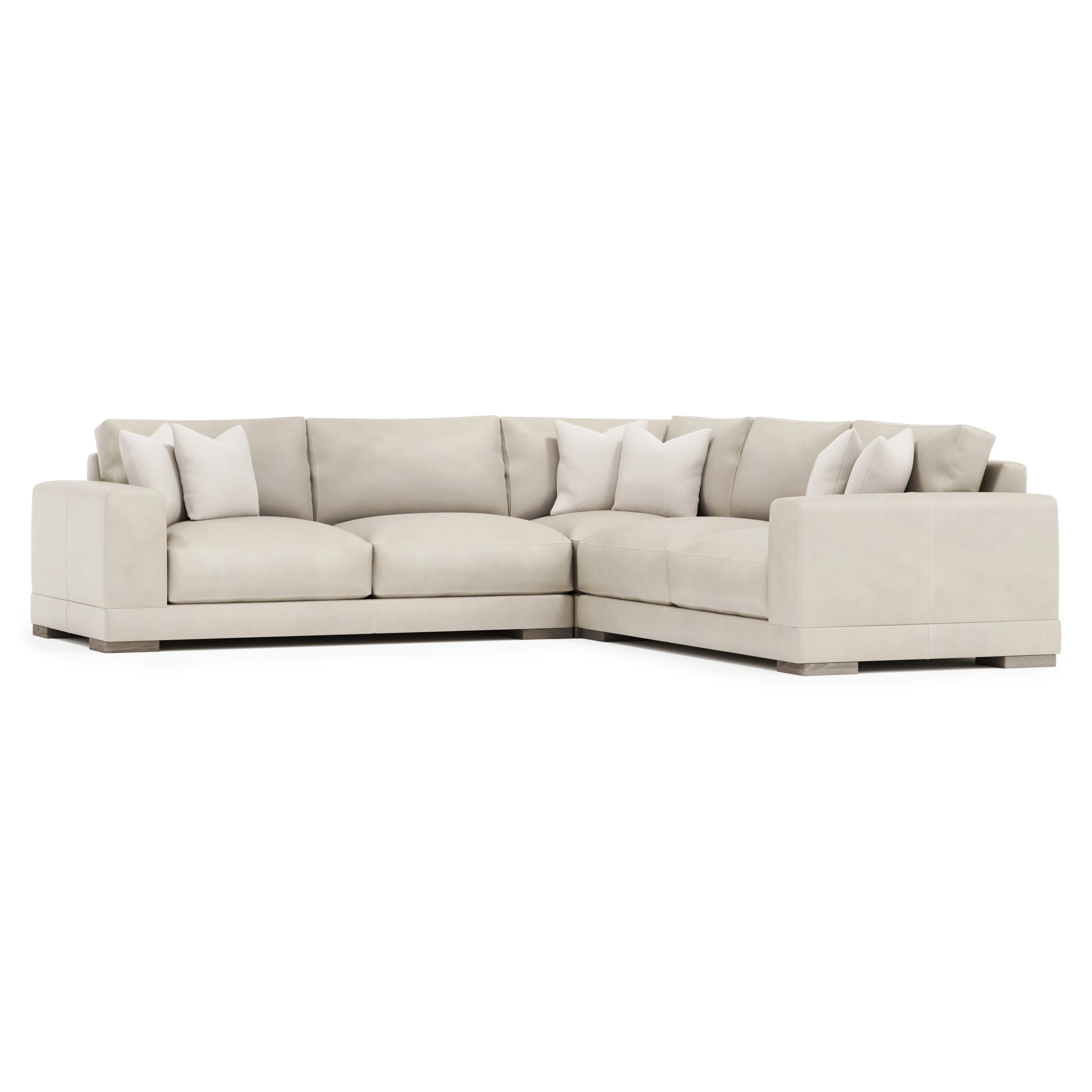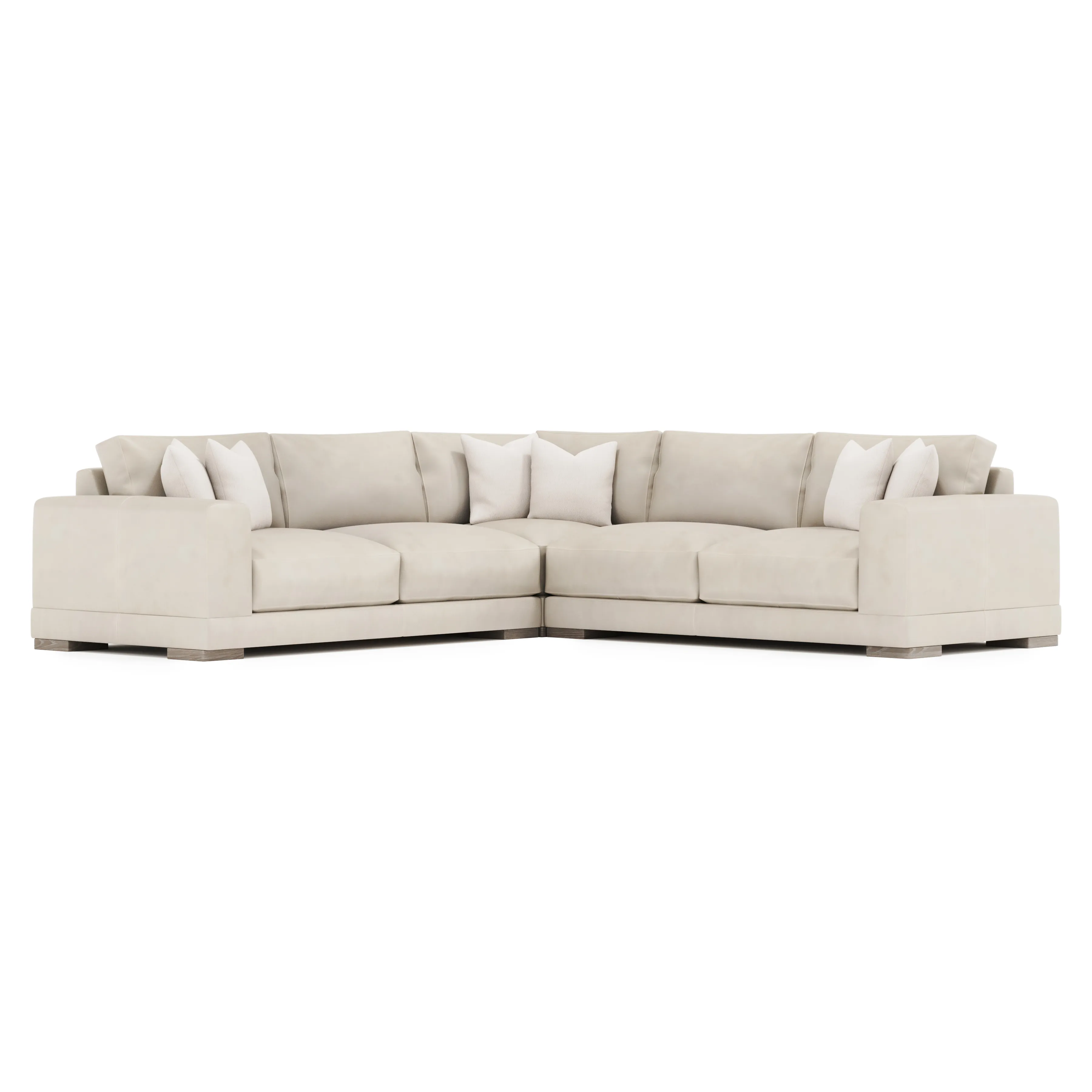 Straight lines are softened with gentle curves on the Lars sectional, complementing the wide track arms and bold silhouette. Plush, deep seat cushions and box-edge bordered back pillows craft a comfort destination. Wide block feet take a stance in textured wood.