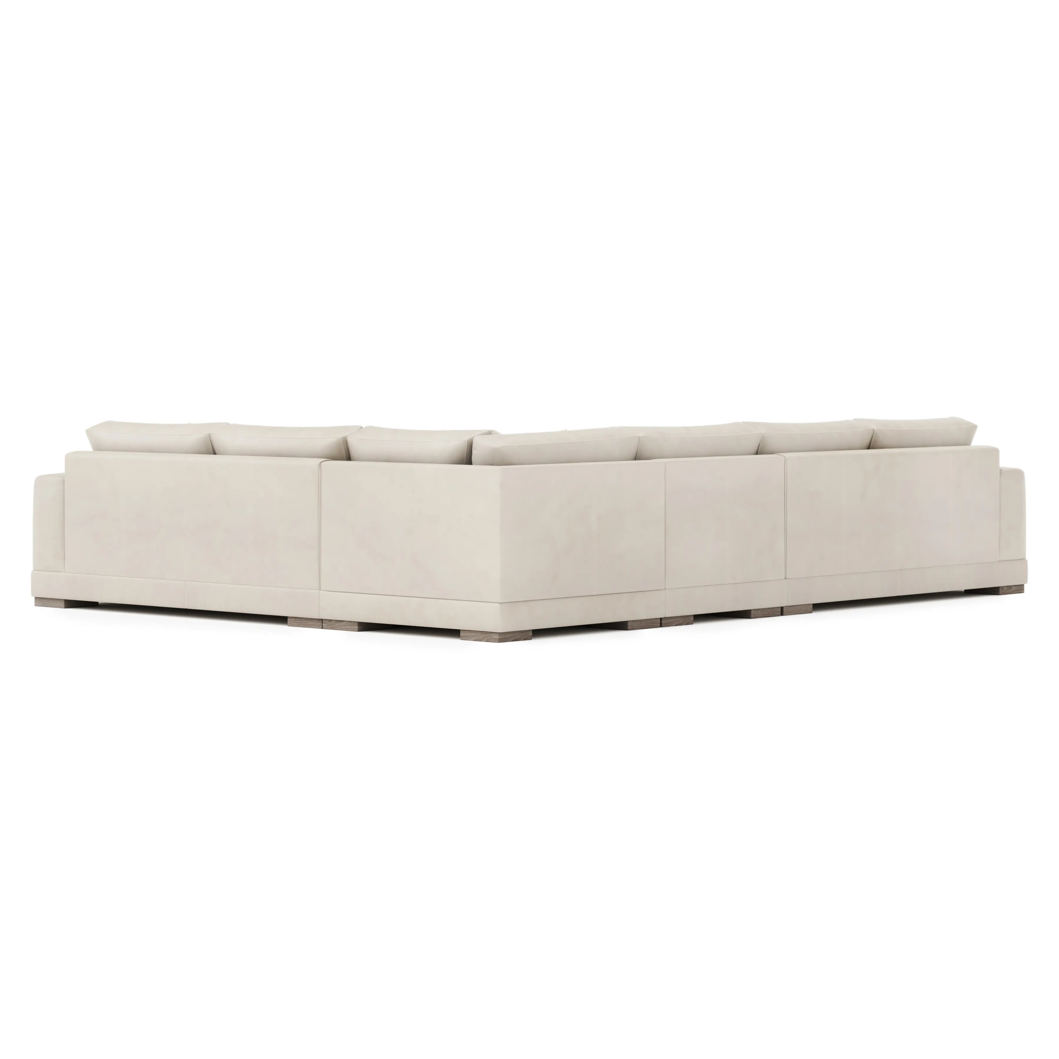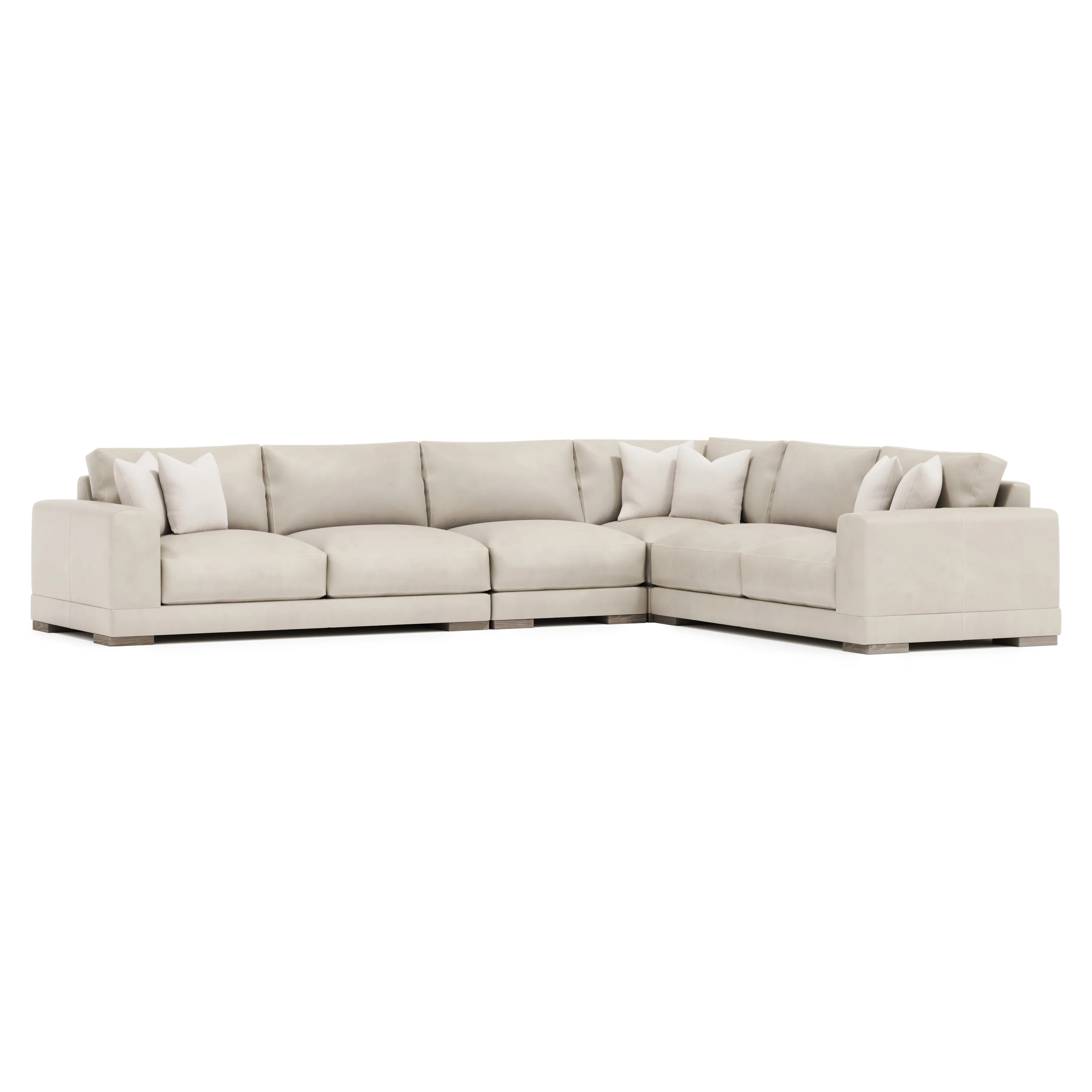 Straight lines are softened with gentle curves on the Lars sectional, complementing the wide track arms and bold silhouette. Plush, deep seat cushions and box-edge bordered back pillows craft a comfort destination. Wide block feet take a stance in textured wood.