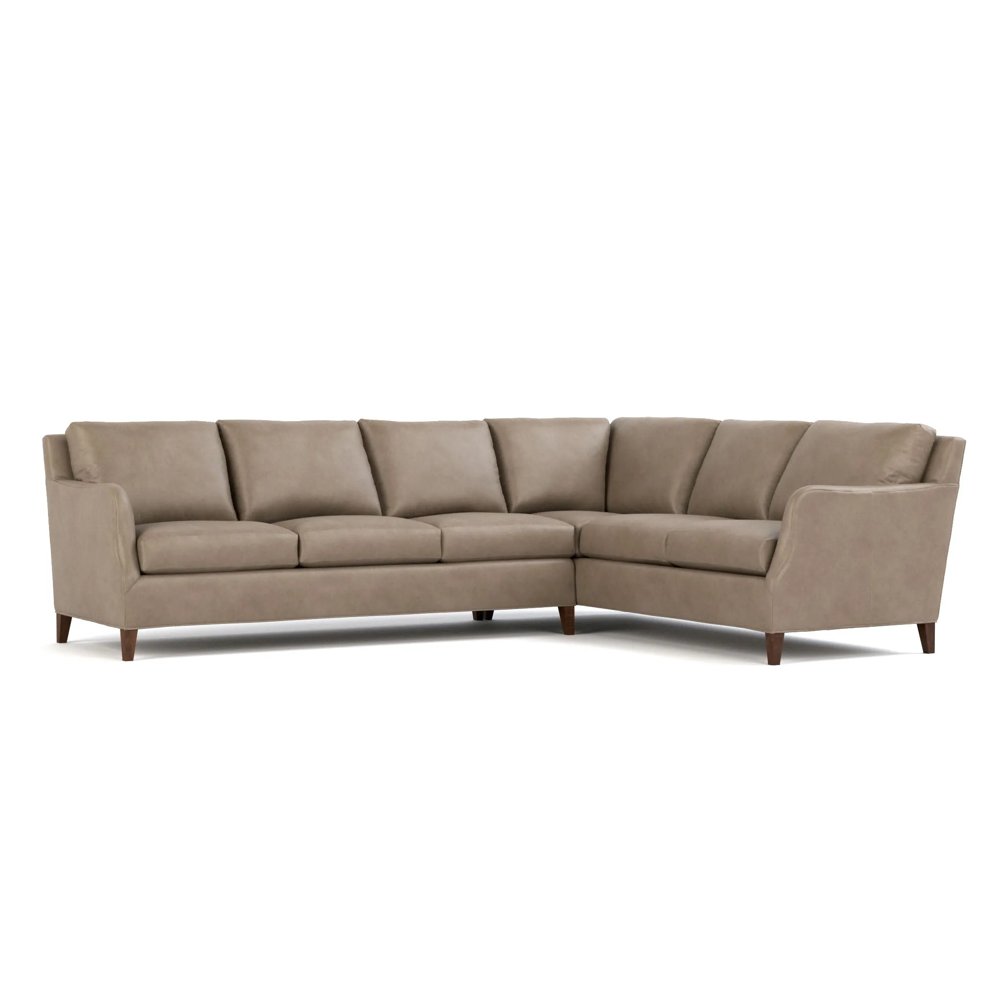 With a smooth new take on scooped English arms and chic five-inch tapered legs, Harper's light, airy silhouette is refined yet casual, perfect for transitional rooms. A full assortment of sectional options-all crafted with plush, weltless cushions and eight-way hand-knotted springs-make it easy to put together a seating area that's stylish and supremely comfortable