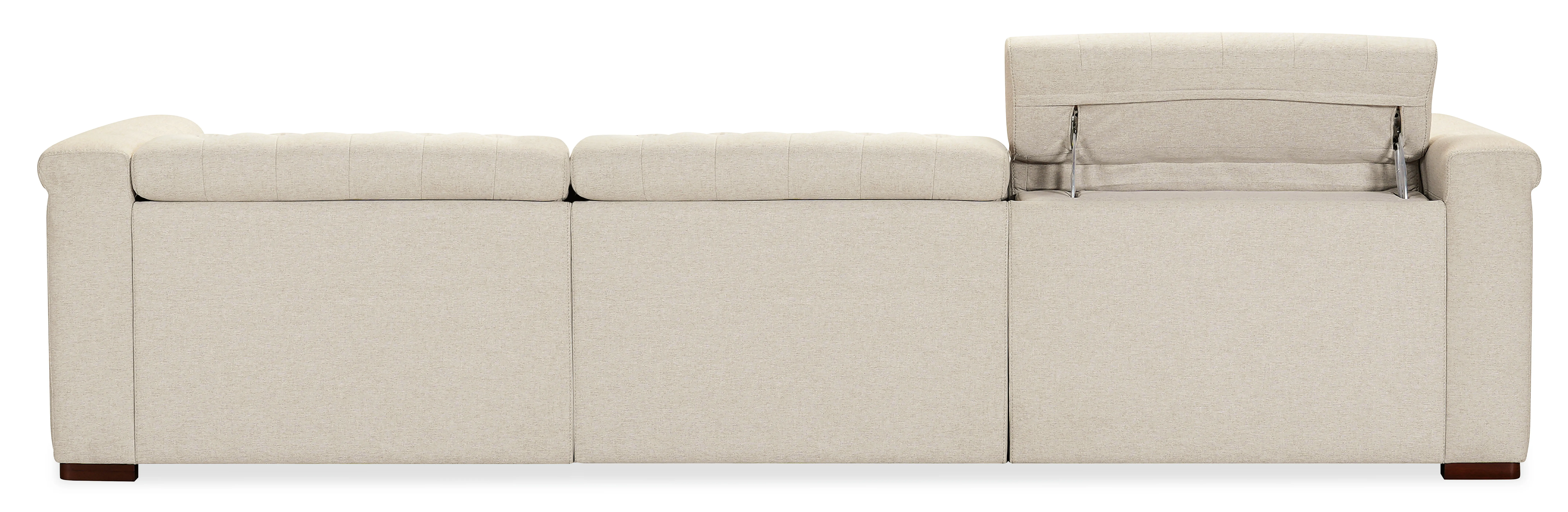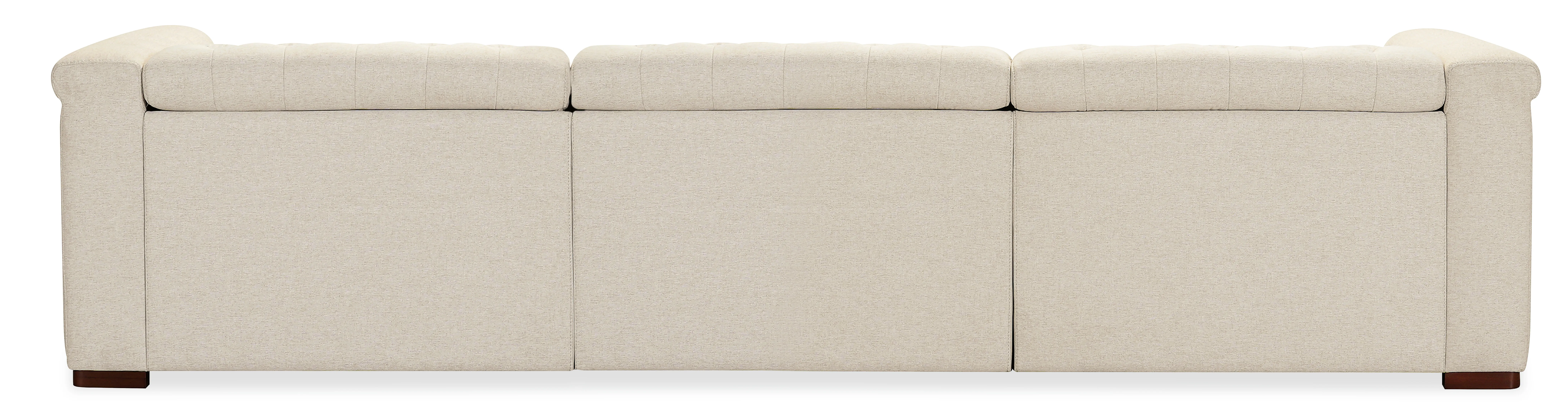 The Savion Deux 3 Seat Sofa offers two power recliners and three power headrests for personalized comfort, all wrapped in the soft Aries Beach performance fabric. This durable fabric, combined with dark wood accents and classic chesterfield tufting, gives the sofa a sophisticated yet versatile appearance. Copper-toned nail trim adds a touch of elegance, while the discreet power recline mechanism ensures luxurious seating for any living room.