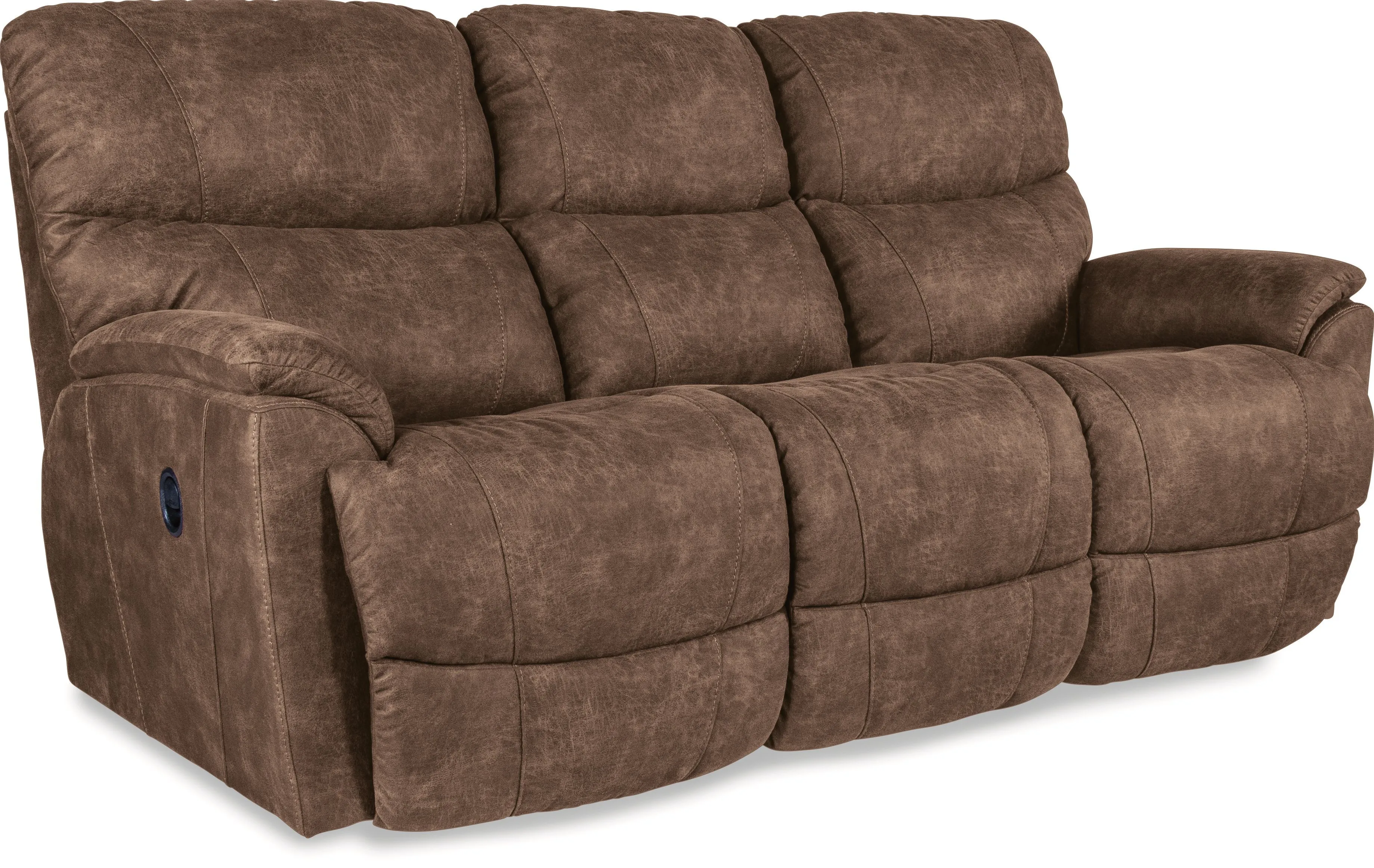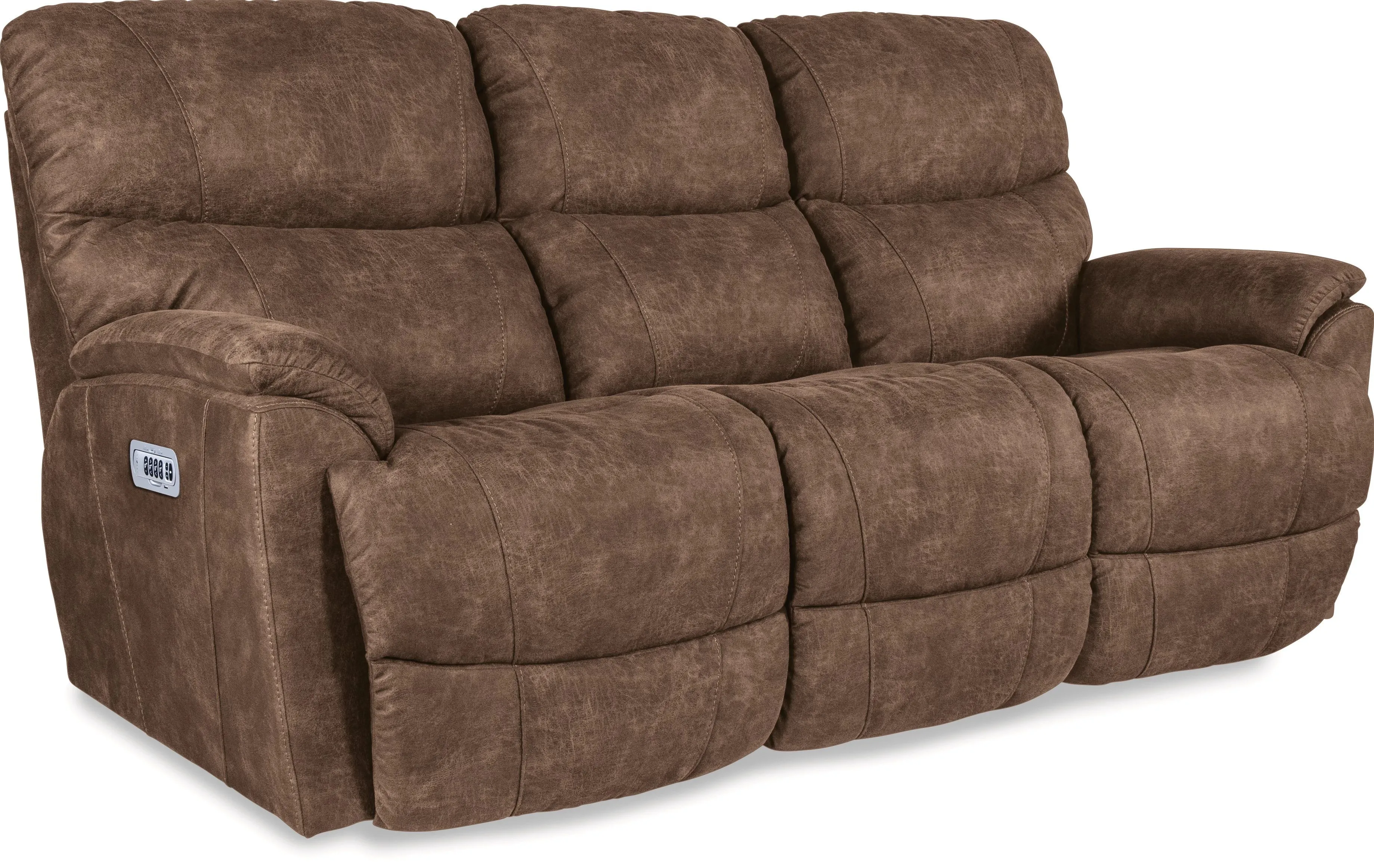 Family-friendly and focused on comfort, our Trouper sofa is made for relaxing. At the touch of a button, go from upright to fully reclined, as powered backs and legrests move together to your preferred position. Independently adjust the power-tilt headrests to enjoy customized support of your head and neck while you find your optimal position for watching TV, reading or relaxing. Stay connected with convenient built-in USB ports, or unplug with our Go Cordless battery pack upgrade to recline anywhere in a room, no electrical outlet needed. Sculpted bucket seats, slightly flared arms and a tall, split back are further proof that this sofa is designed for relaxing.