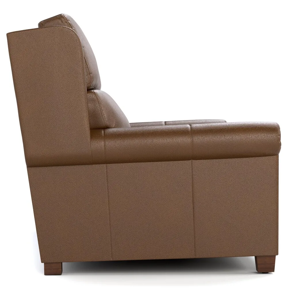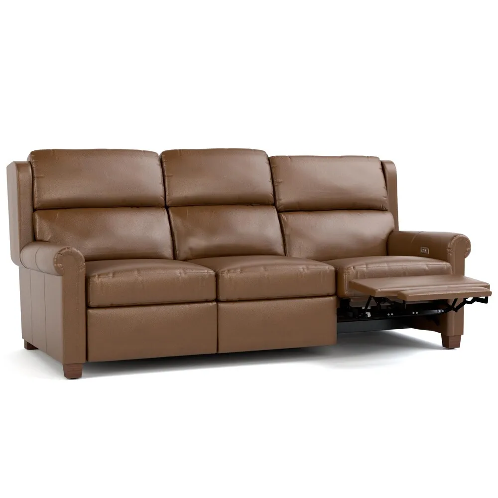 Our Woodlands upholstery creates handsome centerpieces that anchor a room, with tall, upright profiles offset by smaller-scale arms. This Small Roll Arm Motion Sofa seats three comfortably and features a traditional arm style. On the inside of the arm, you'll find switches that control state-of-the-art wall-hugging power motion and an articulating headrest, as well as a USB charging port for your devices. Eight-way hand-knotted springs provide even support and comfort. Available for Express Ship in three Selvano leathers with your choice of any Maple finish.