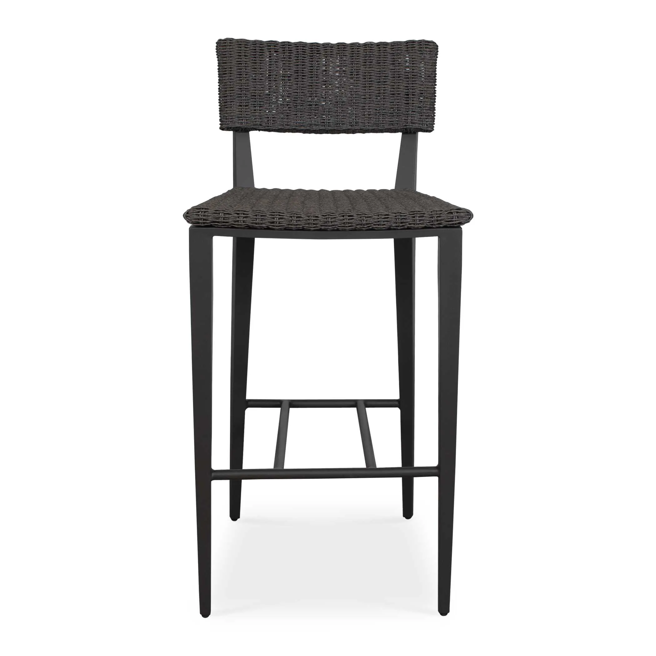 The Calbas Bar Stool Perfectly Blends Style And Comfort. The Java Black Powder Coated Aluminum Frame Is Hand Wrapped In A Textured Mocha All-weather Wicker Creating A Harmonious Look That Will Enhance Any Outdoor Setting.