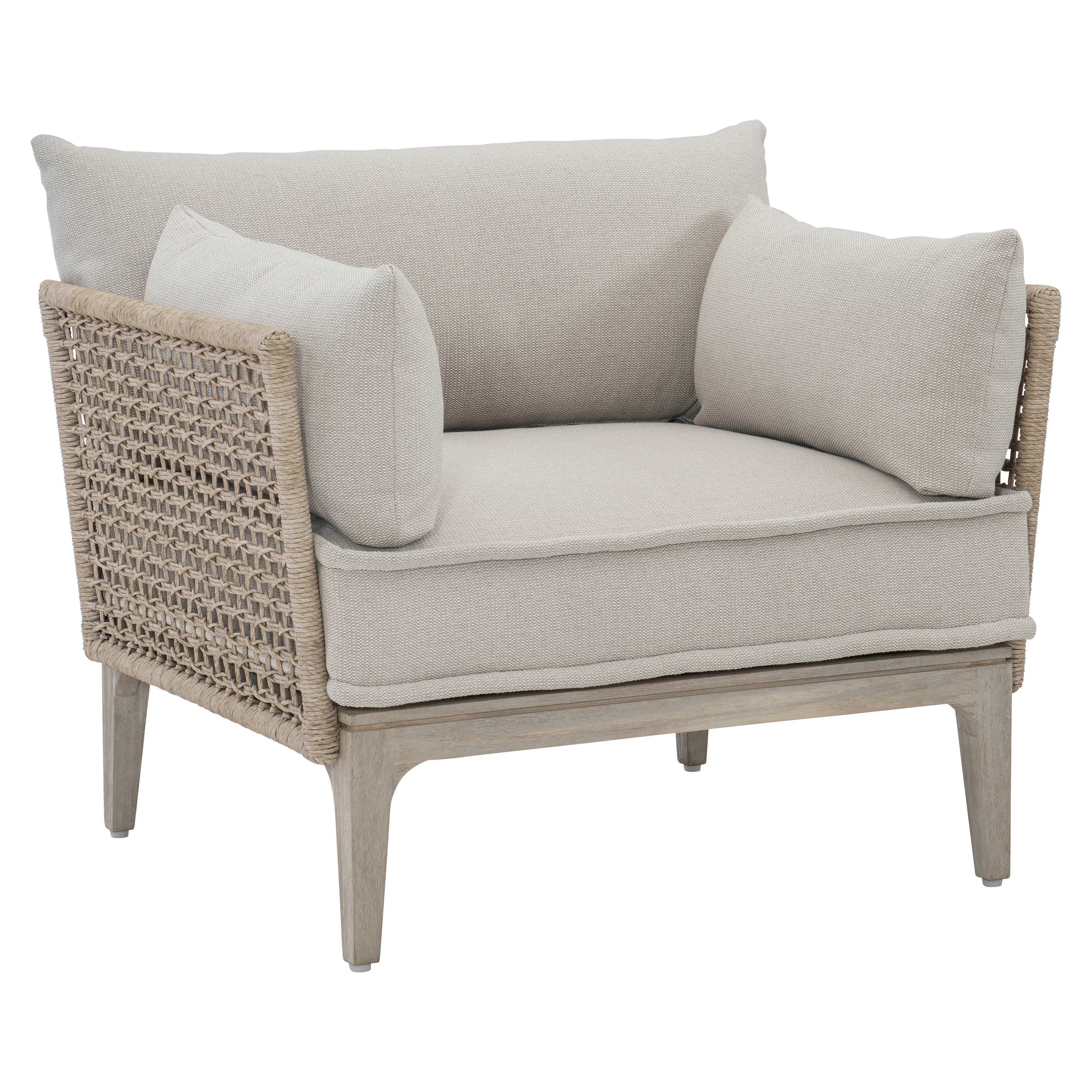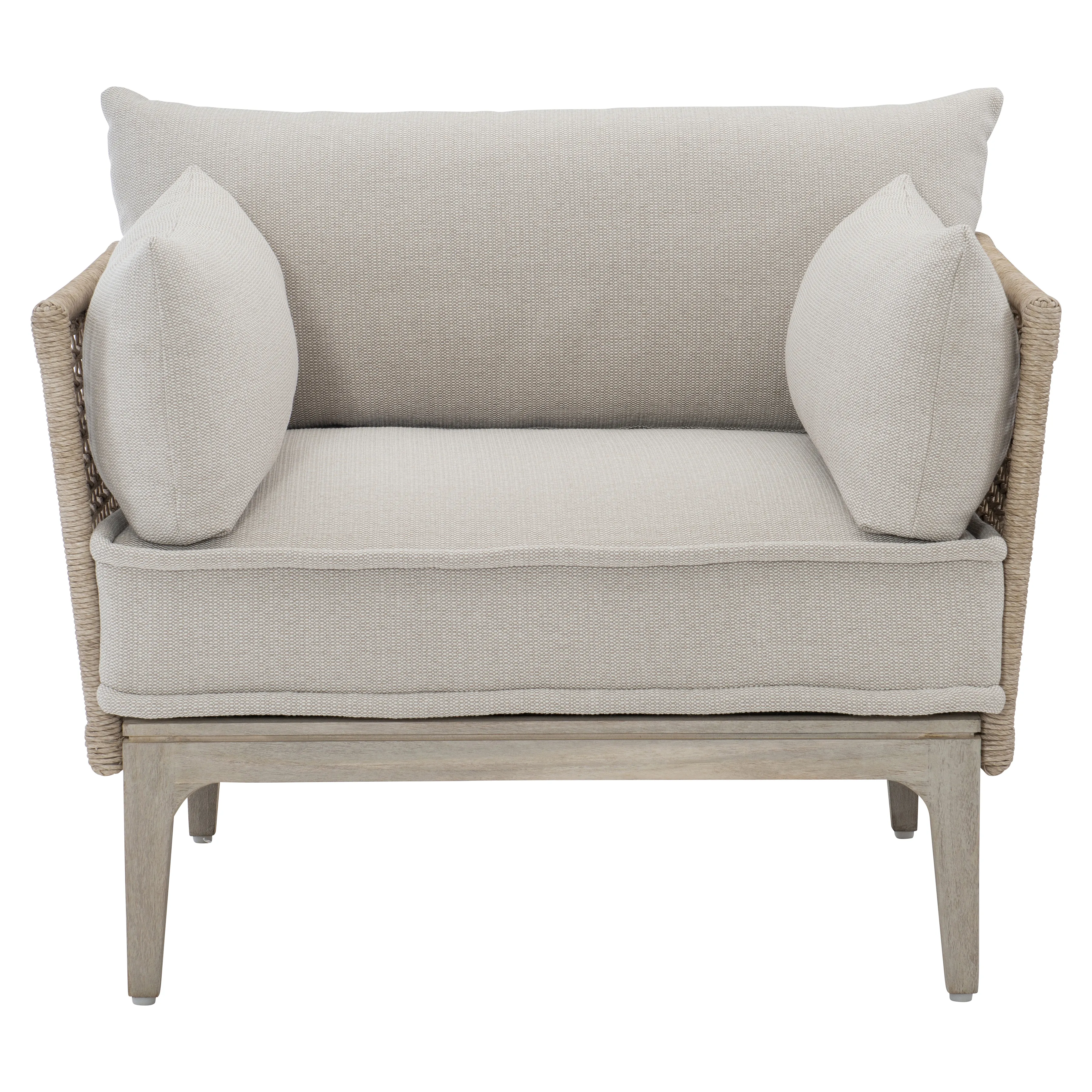 In a mix of stunning textures, the Catalonia chair is designed with twisted abaca all-weather wicker across the sides and back, over a frame of sun-washed teak. A deep seat cushion is flanked by a back pillow and two bolsters for ease and comfort. The elevated outdoor look breathes fresh air into exterior design with uniquely beautiful materials.
