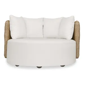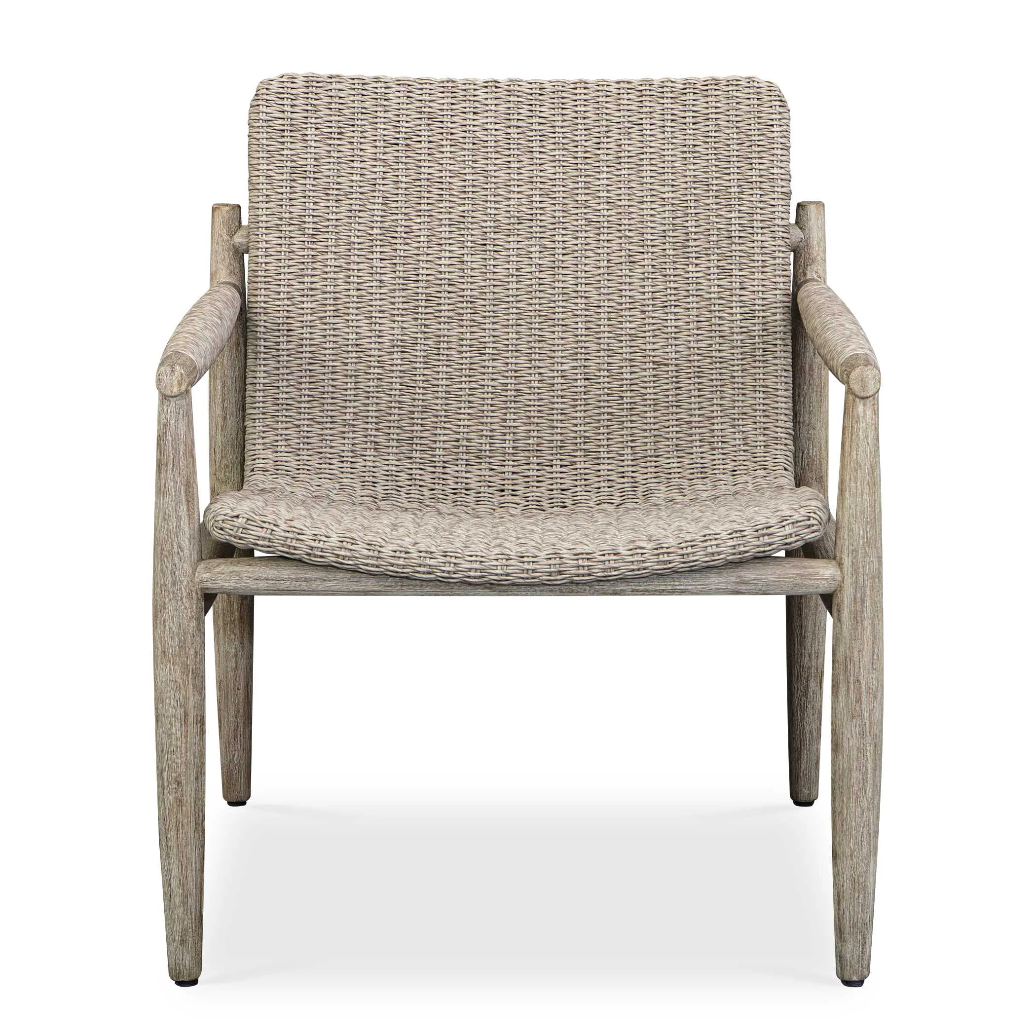 Indulge In Comfort With The Stylish Sumba Outdoor Lounge Chair. The Continuous Scooped Seat In Twisted Oatmeal All-weather Wicker Offers A Relaxing Feel, Cradled By The Durable Mahogany Wood Frame Finished In Cerused Wheat, Ensuring Long-lasting Use.