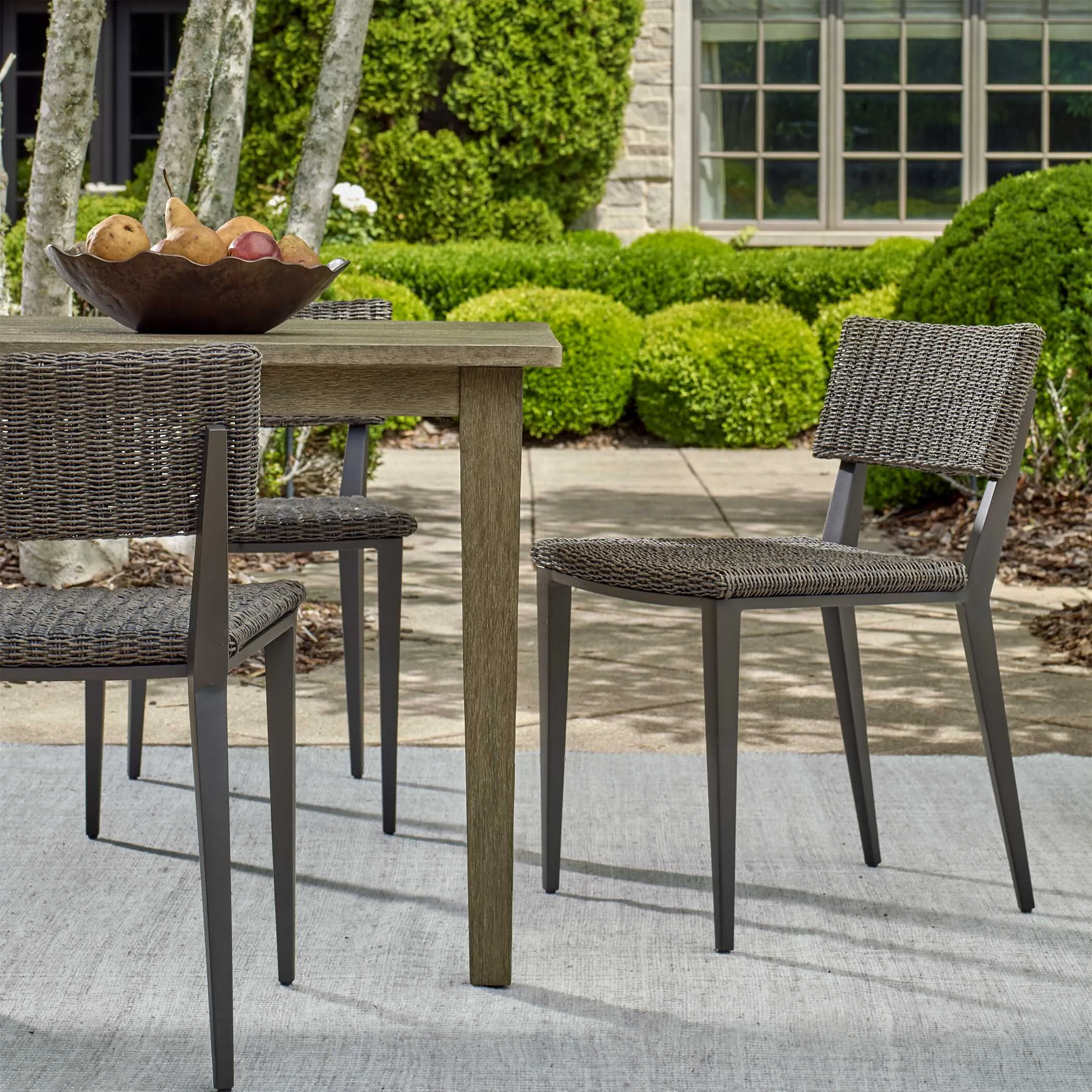 The Calbas Dining Chair Perfectly Blends Style And Comfort. The Java Black Powder Coated Aluminum Frame Is Hand Wrapped In A Textured Mocha All-weather Wicker Creating A Harmonious Look That Will Enhance Any Outdoor Setting.