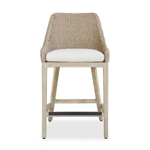 Enjoy Alfresco Dining In The Paloma Outdoor Dining Chair. It's Gently Sloped And Curved Back Gives Supportive Comfort, Wrapped In Twisted Oatmeal All-weather Wicker, Atop A Durable Mahogany Wood Frame Finished In Cerused Wheat, Ensuring Long-lasting Use. The Plush Cushion Is Upholstered In Oyster White Solution Dyed Acrylic Fabric That Is Constructed To Withstand The Moisture And Dirt That Comes With Outdoor Use.