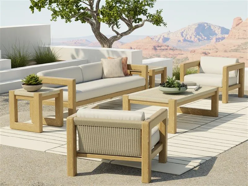 Inspired by the rustic charm of the high desert, the Sedona collection highlights the natural beauty of organic materials and textures. Crafted from 100% solid teak wood, Sedona features our signature weathered teak finish, coupled with a textured resin weave to provide exceptional durability. Sedona is a celebration of contemporary scale, with oversized deep seating that invites hours of leisure. Offering a full suite of dining, lounge, occasional, and deep seating silhouettes, the Sedona collection effortlessly blends rustic elegance with modern sophistication in any outdoor environment.